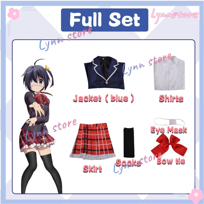 Chuunibyou Demo Koi ga Shitai Cosplay Costume Takanashi Rikka Skirt Jacket Wig Bow Tie Shirts Socks Eye Mask Party Comic Show Cos Suit