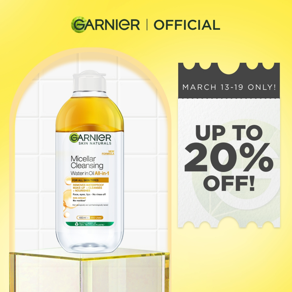 Garnier Argan Oil Micellar Water Waterproof Makeup Remover, Facial Cleanse (125ml / 400mL)