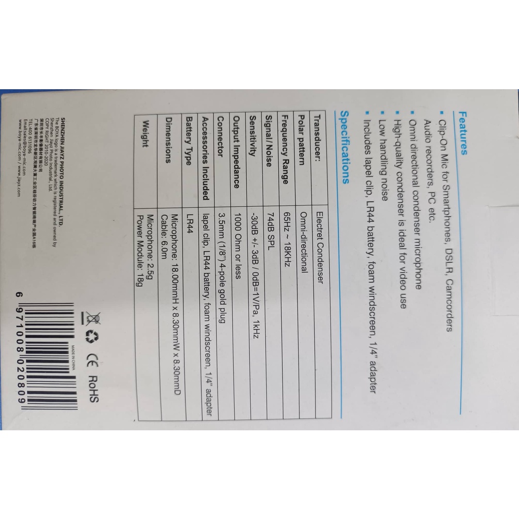 BOYA lavalier microphone for cellphone, laptop,camera