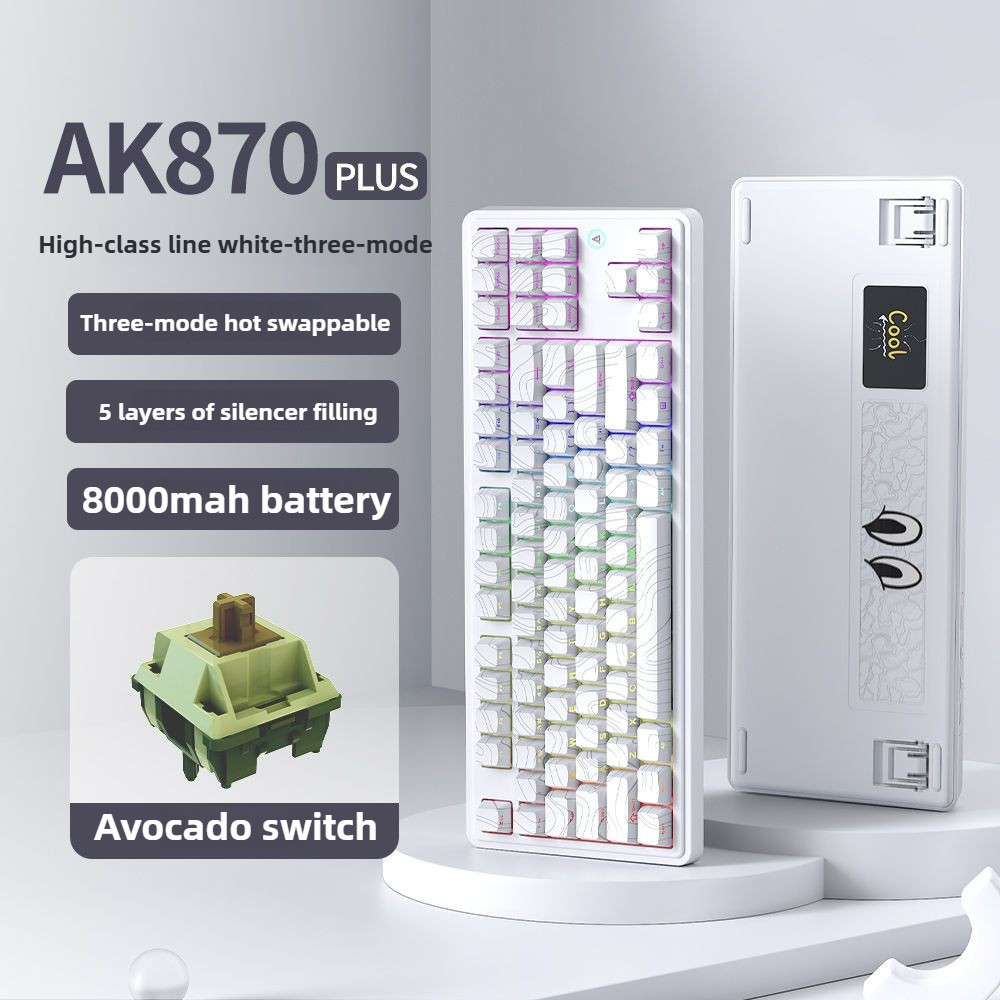 【PH STOCK】Ajazz New Ak870 Plus 8000mAh RGB Gaming Mechanical Keyboard Hot Swap 84 Keys Wireless Bluetooth 2.4G Wired Keyboards TFT FOR Desktop Laptop PC