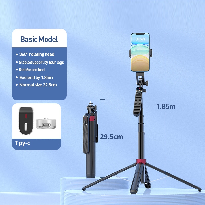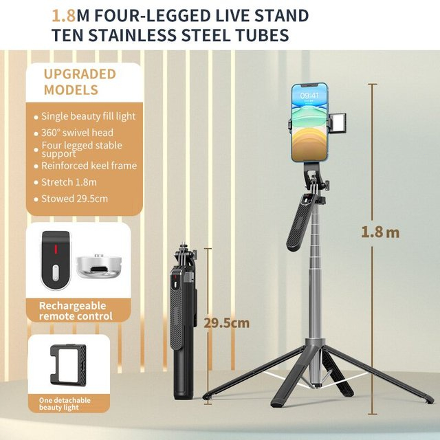 Selfie Stick Face Tracking Tripod 360°Rotation with Bluetooth Remote Fill light for Vlogging