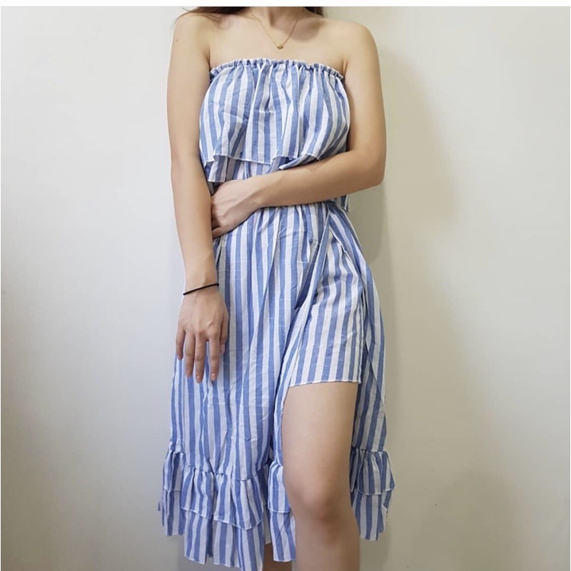 Fashionable Marimar Terno Tube Top & Flowy Skirt Slit inner short Havana Hawaiian Summer Outfit