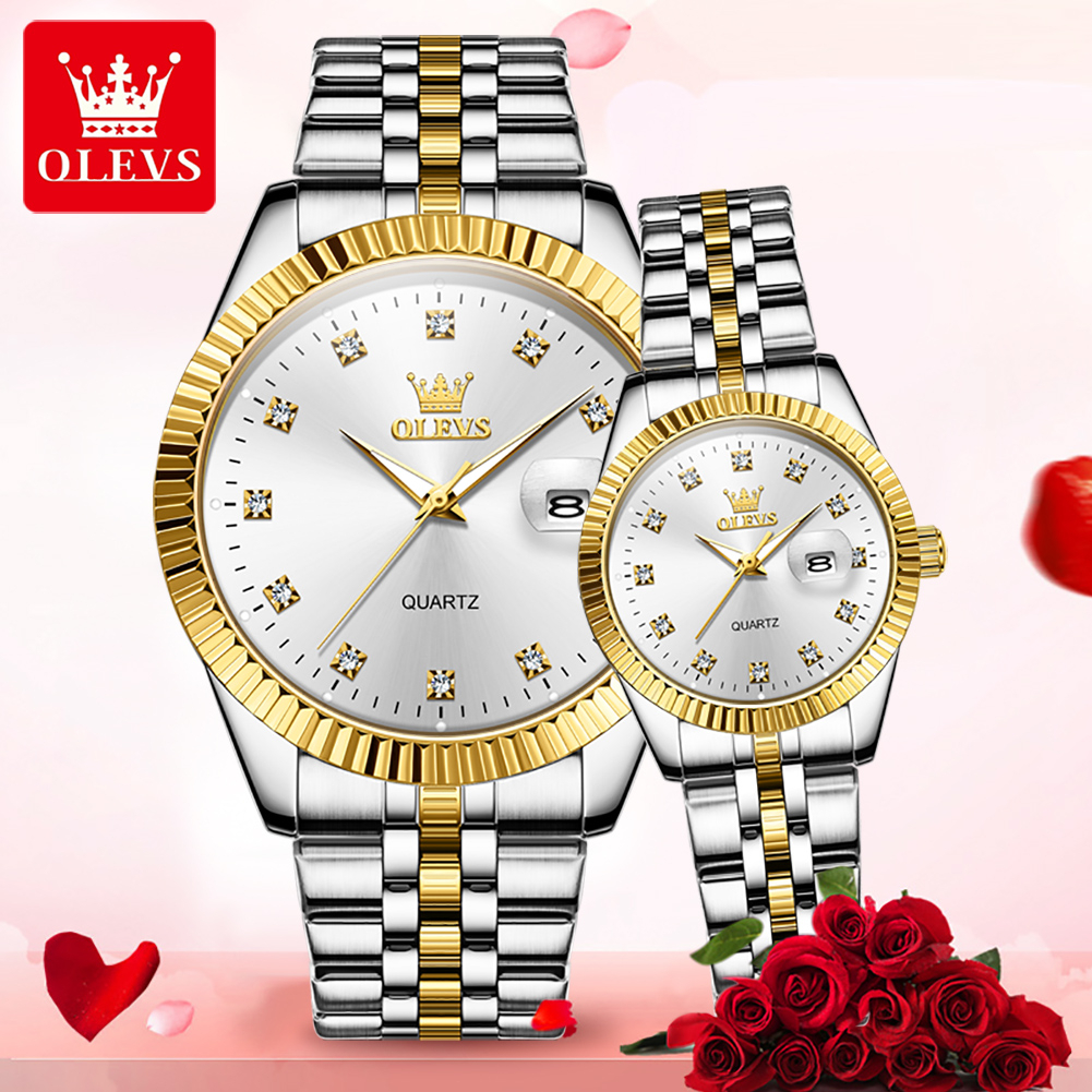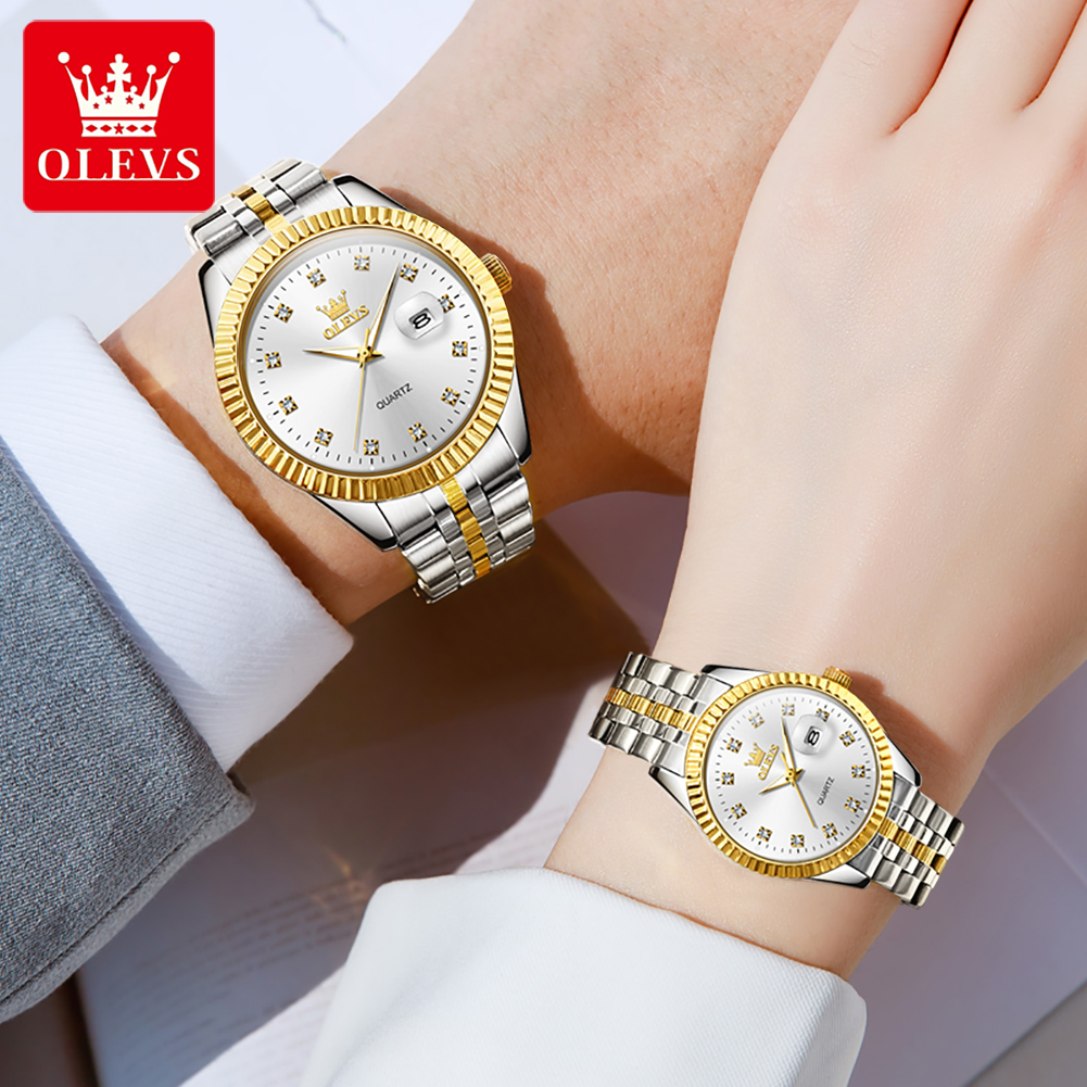 OLEVS Couple Watch Waterproof 2024 Original Relo Fashion Stainless Steel Calendar Luminous Luxury Watches 5526