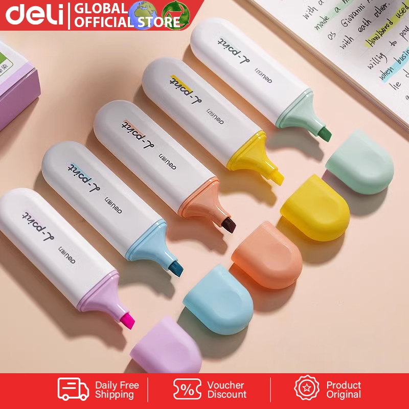 Deli Highlighter 7Colors Marker Pen Macaron Chisel Tip Cartoon Decoration Smooth Marker Pen S600PRO