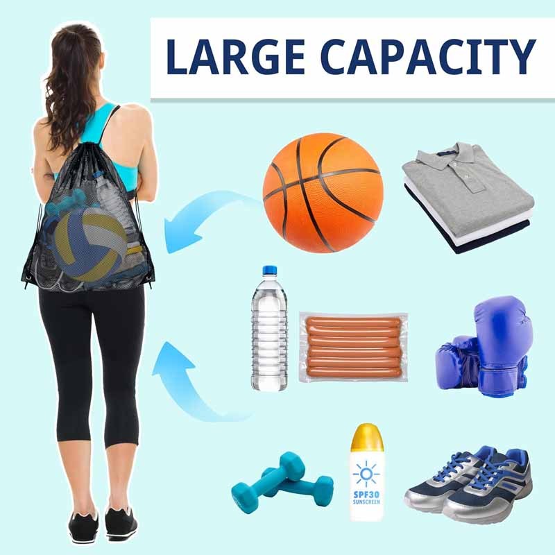 Mesh Drawstring Bag Swimming Bag Heavy Duty Mesh Drawstring Bag Sport Equipment Storage Bag
