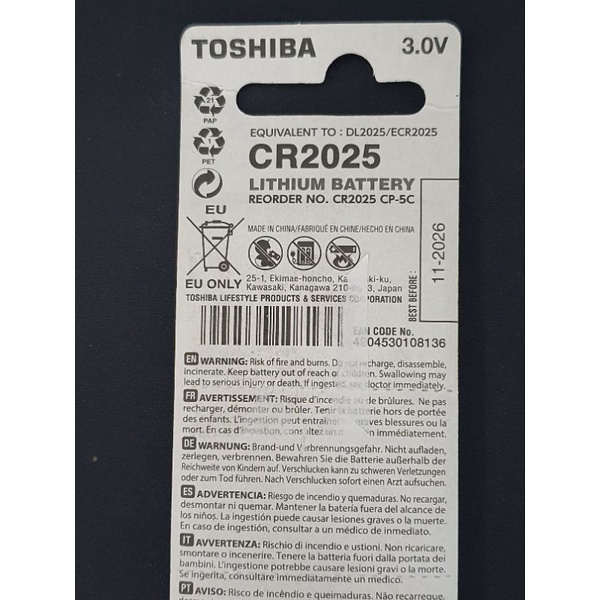 TOSHIBA CR2025 CR1620 LITHIUM BATTERY 1 PC
