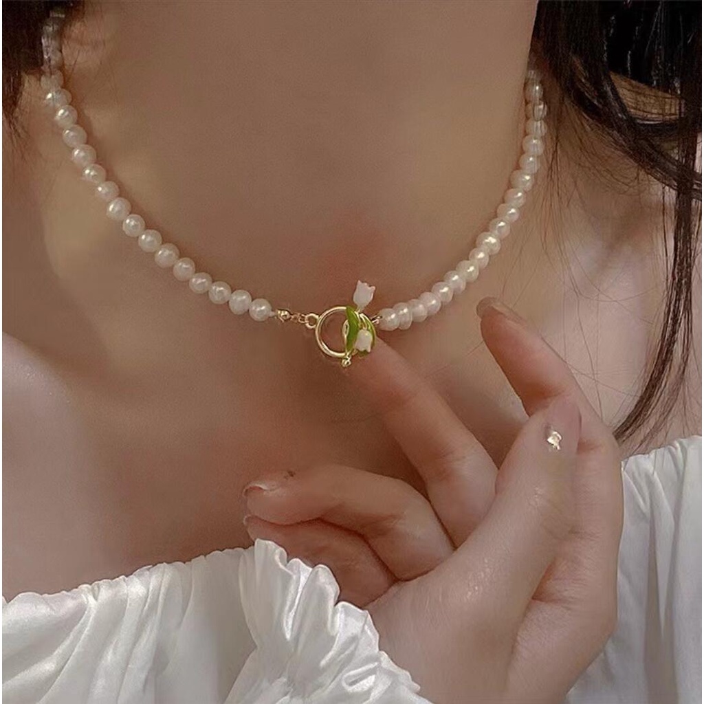 Women Retro Tulip Pearl Flower Colored OT Buckle Bracelet