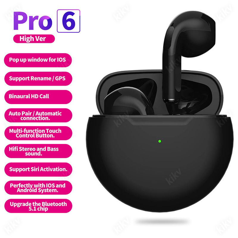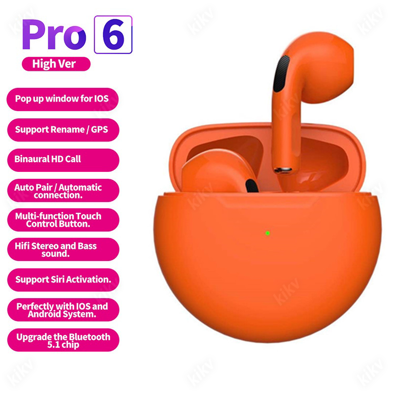 Pro 6 TWS Wireless Earphones with Microphone Touch HiFi Stereo Buletooth Earbuds Bluetooth Headset