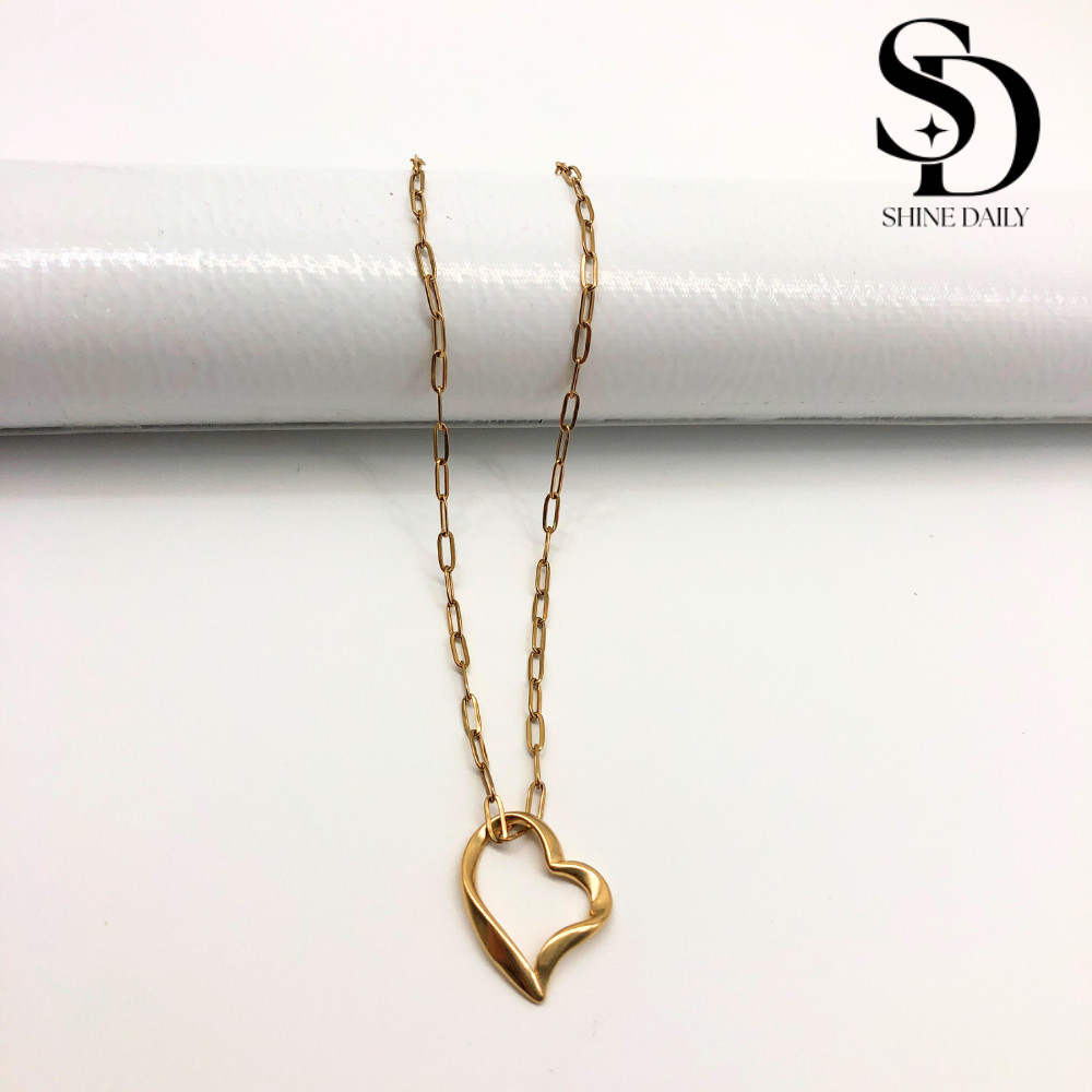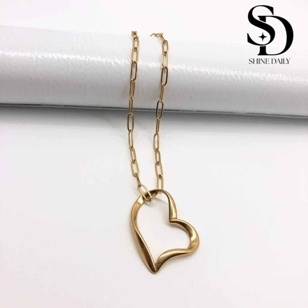 ⟪Shine⟫ Open Heart Paperclip Chain Necklace | Non-Tarnishing Hypoallergenic Stainless Steel