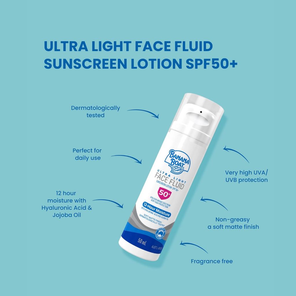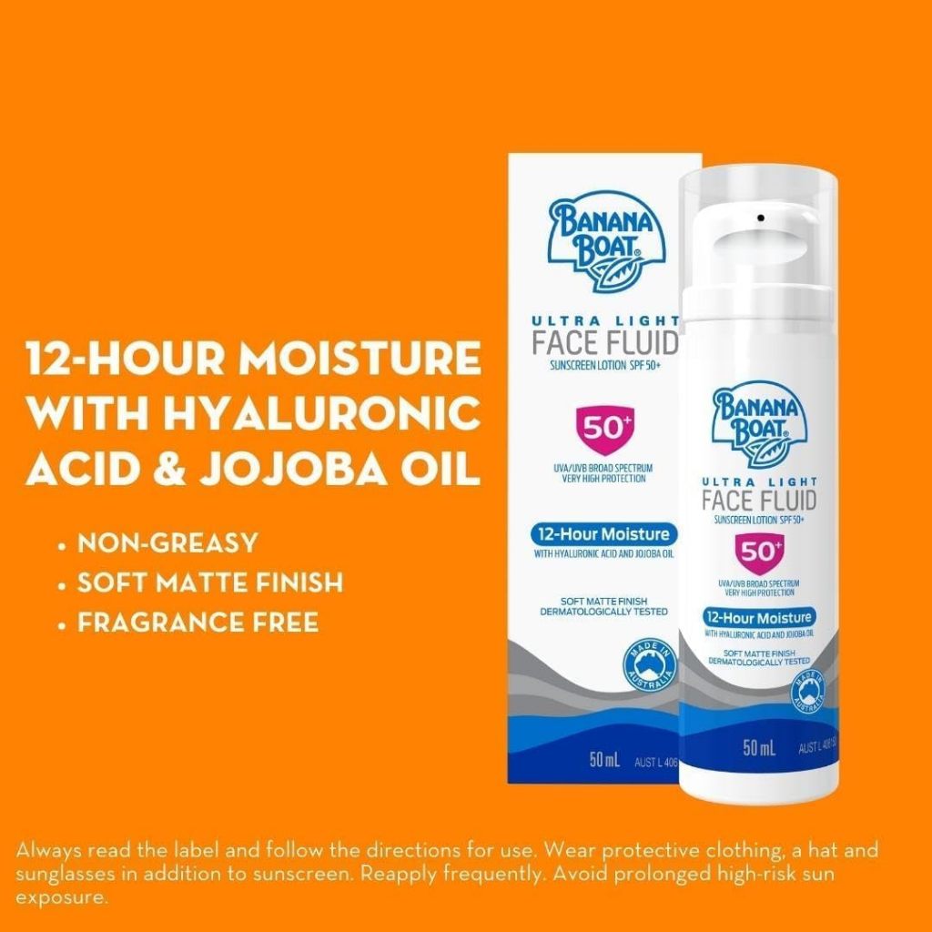BANANA BOAT SPF50+ Ultra Light Face Sunscreen Fluid, 50ml, 12H moisture