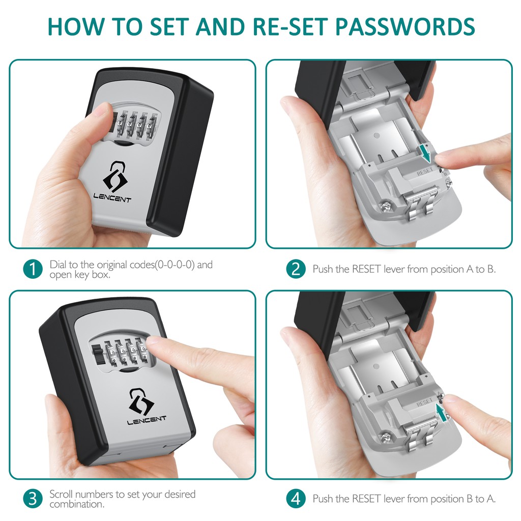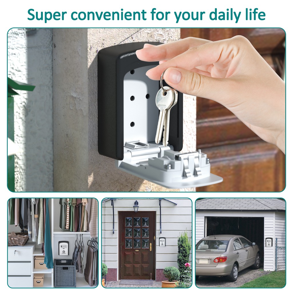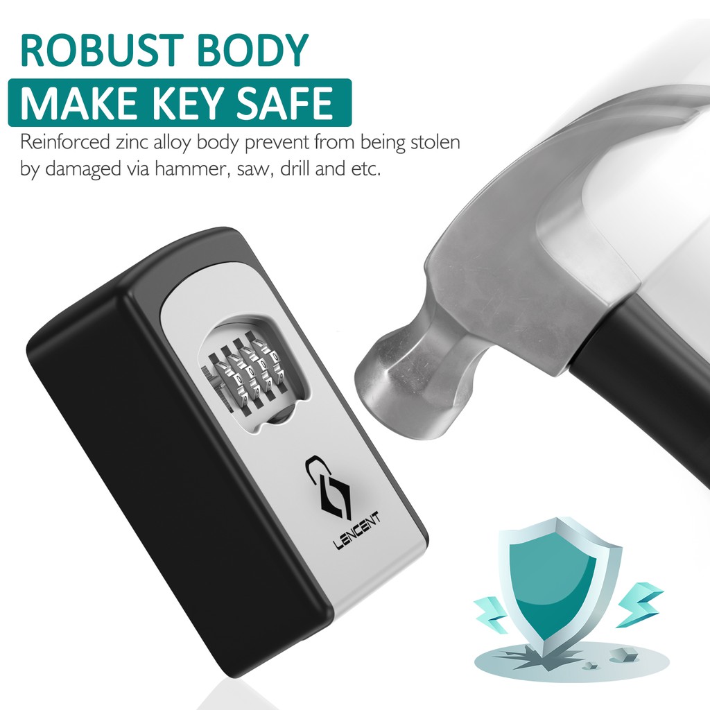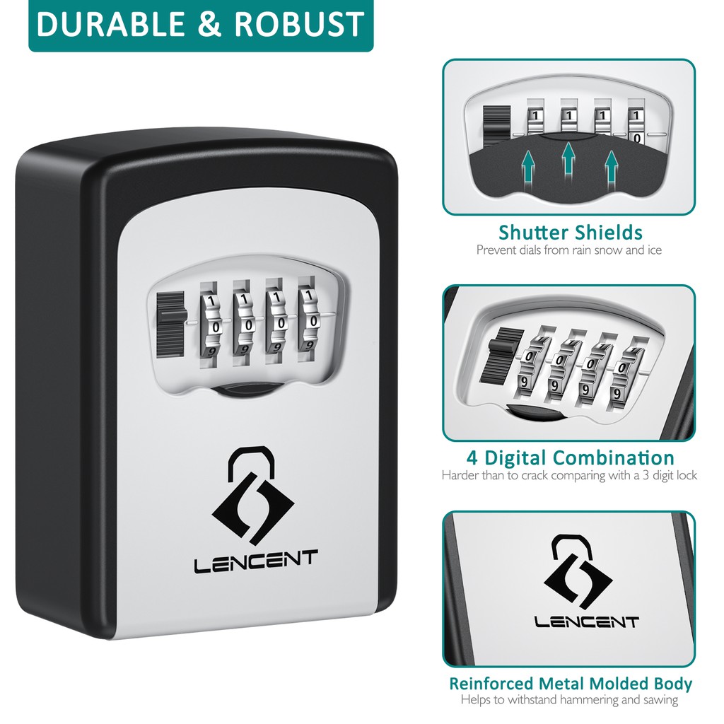 Lencent Key Lock Box Wall Mounted Key Safe Key Storage Box Strong 4-Digit Combination Secure Keys for Home Office Etc.