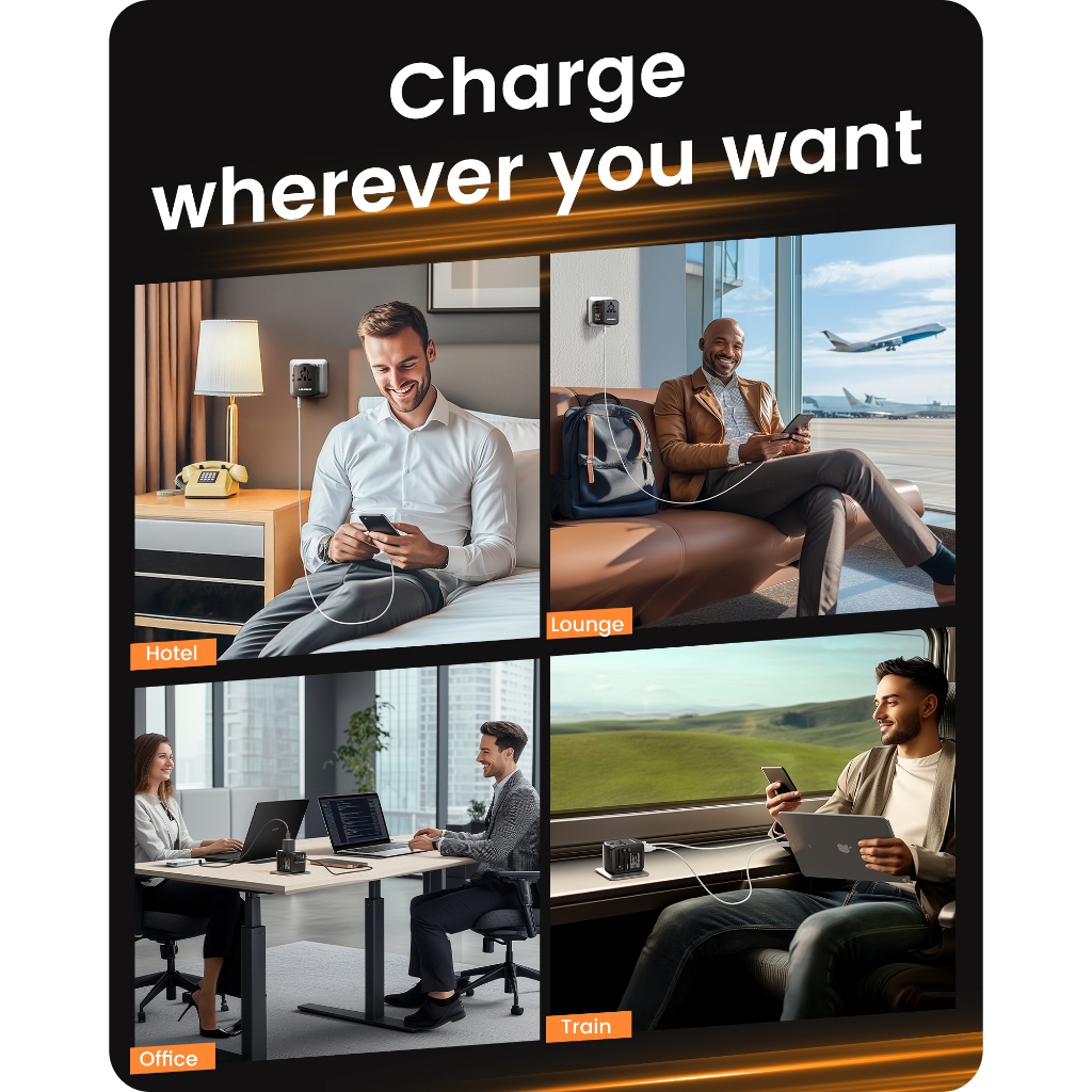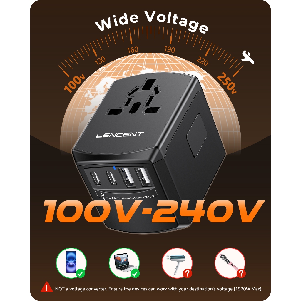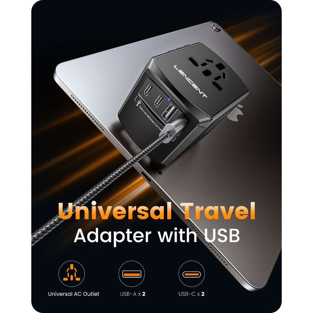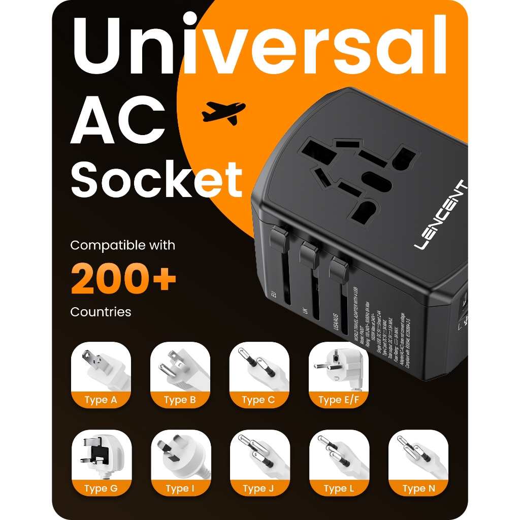 LENCENT Universal Travel Adaptor with UK/USA/EU/AUS Worldwide Travel Charger Plug, 2 USB Ports and 2 Type C