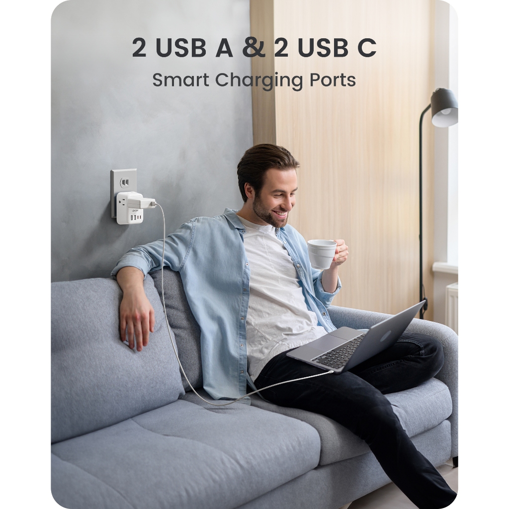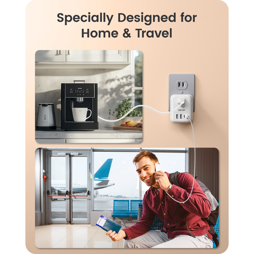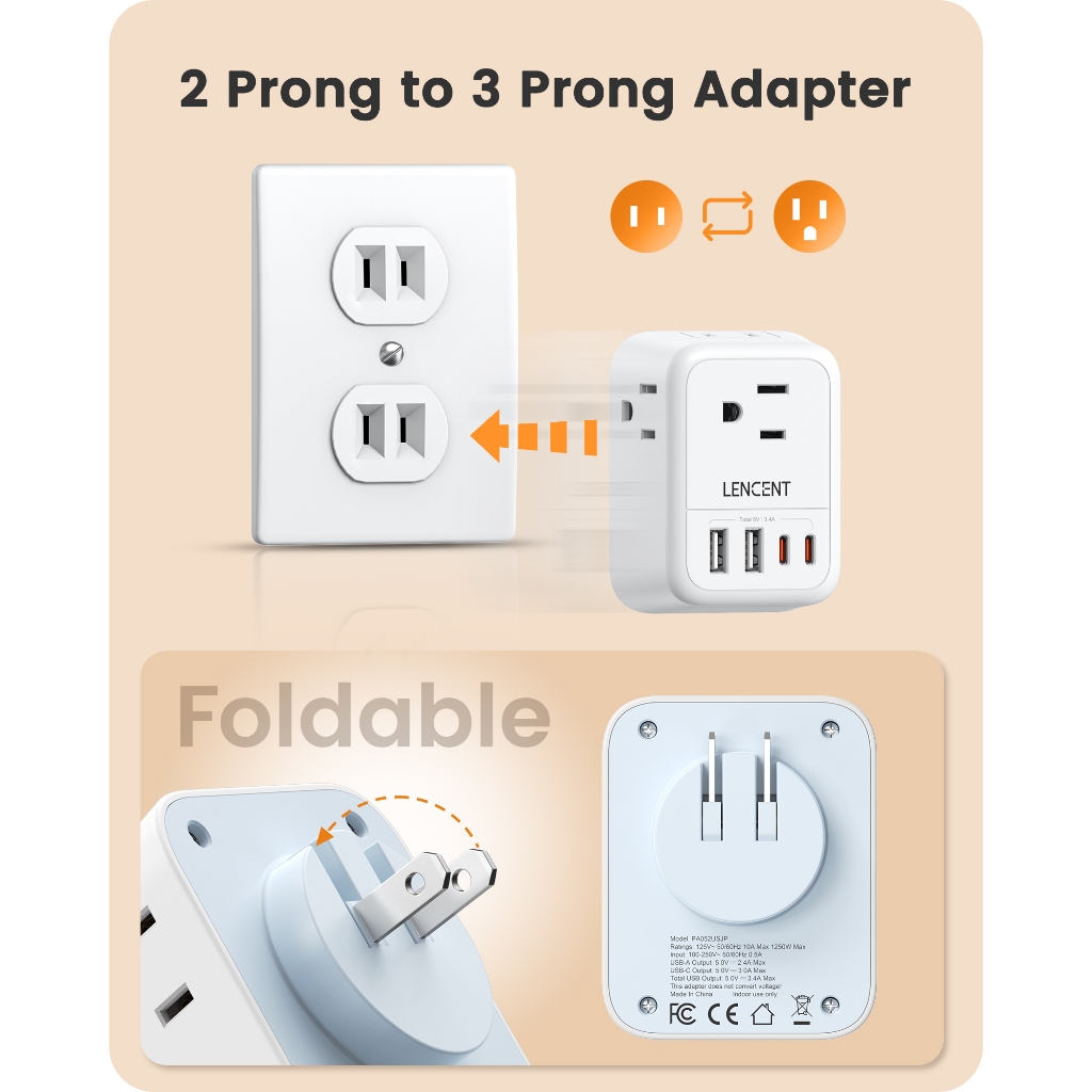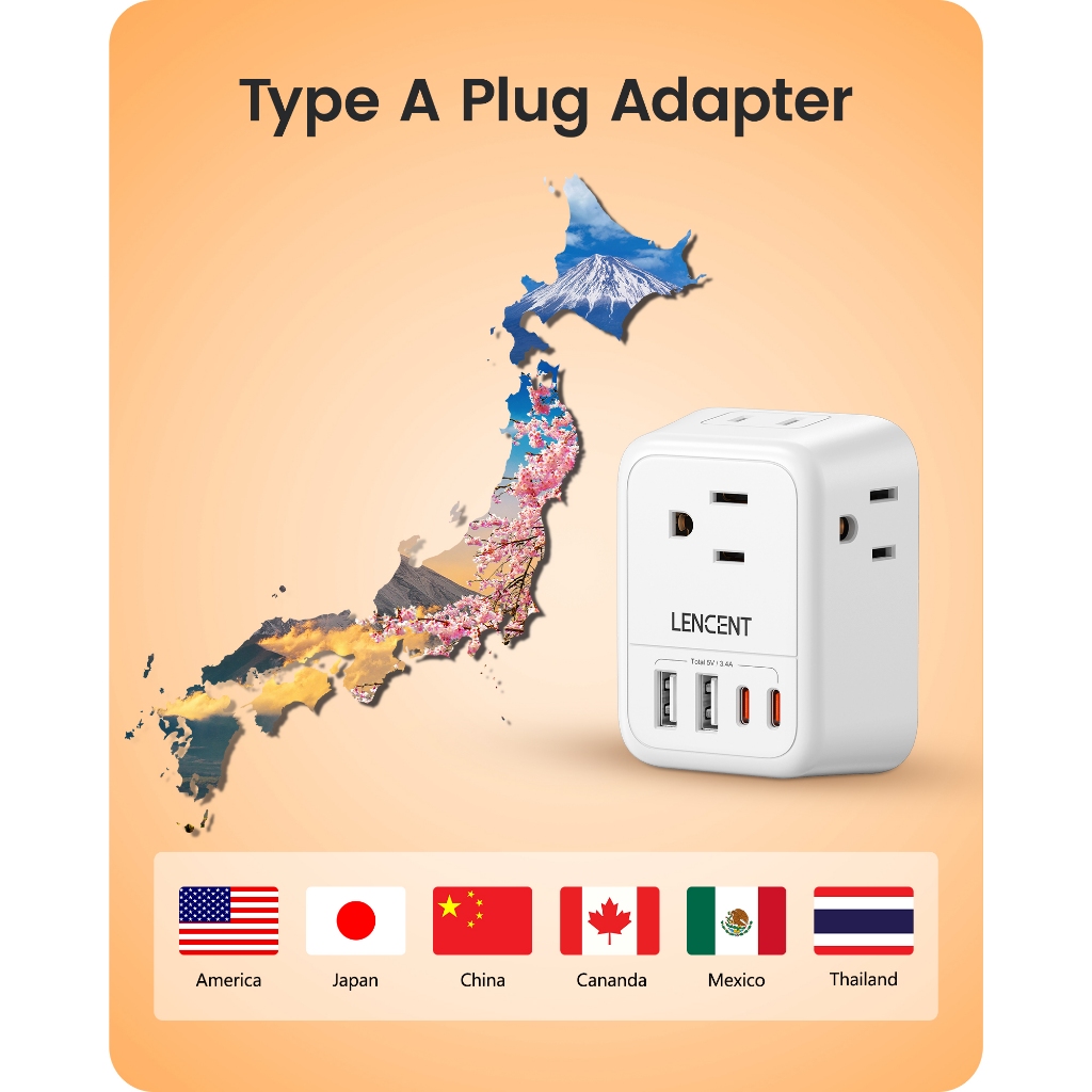 LENCENT Foldable Japan Travel Adapter, 2 to 3 Prong Outlet Adapter, US to Japan Plug Adapter with 4 AC Outlets 4 USB Charger Cube(2 USB C), USA to Japan Canada Canada Mexico Philip