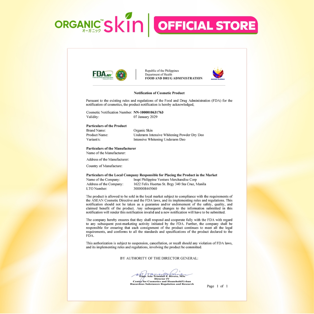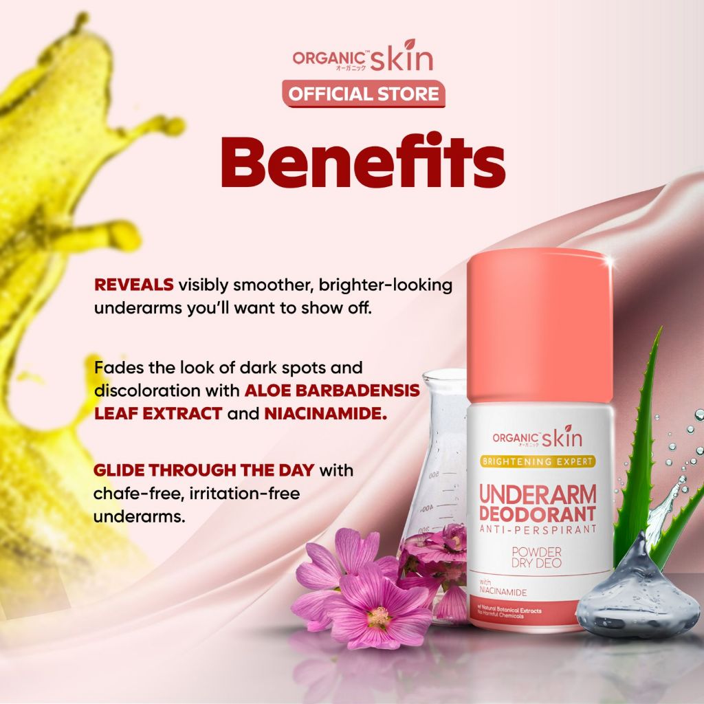 Organic Skin Japan Intensive Whitening Underarm Powder Dry Deodorant Under Arm Deo Roll on (40ml)
