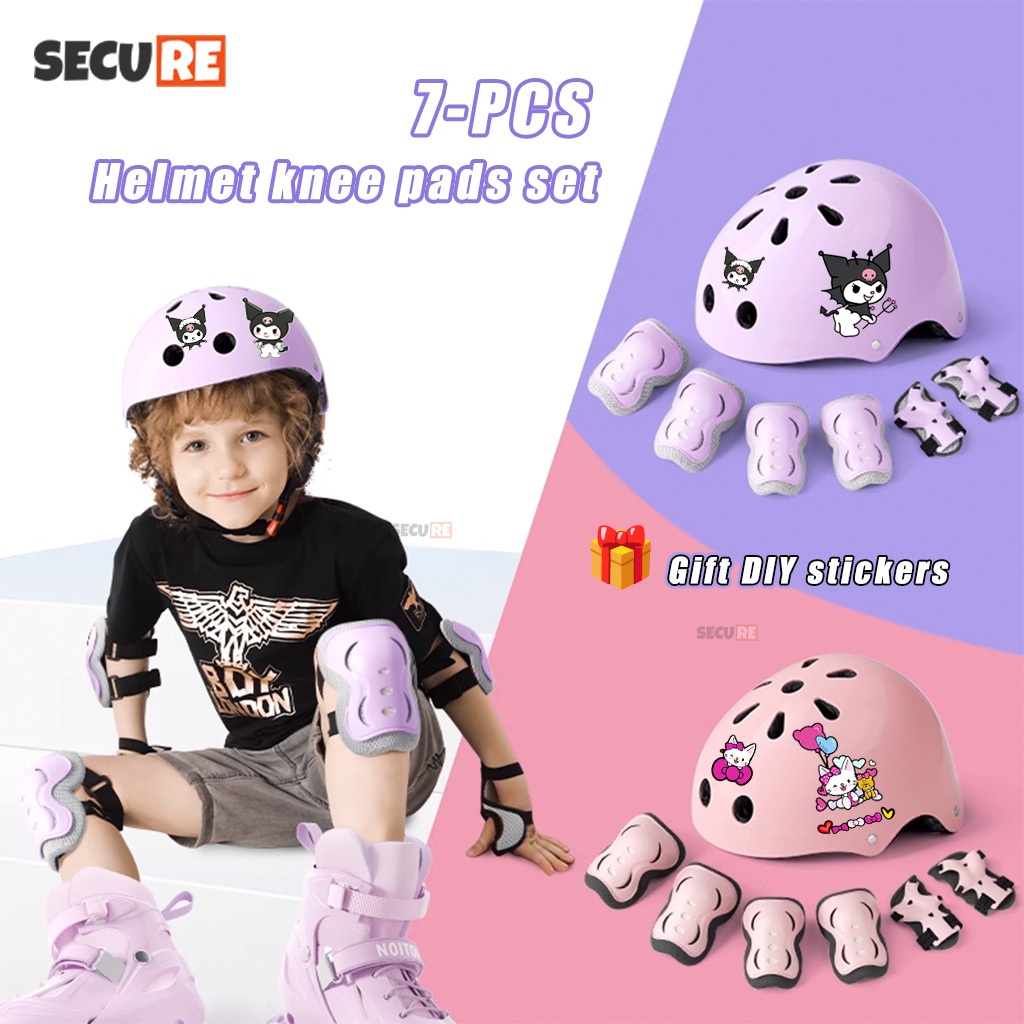 7Pcs Set Kids Helmet Knee Elbow Protective Gear Set Skating Safety Guard