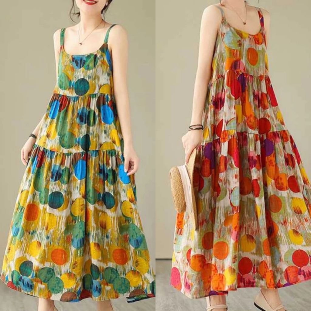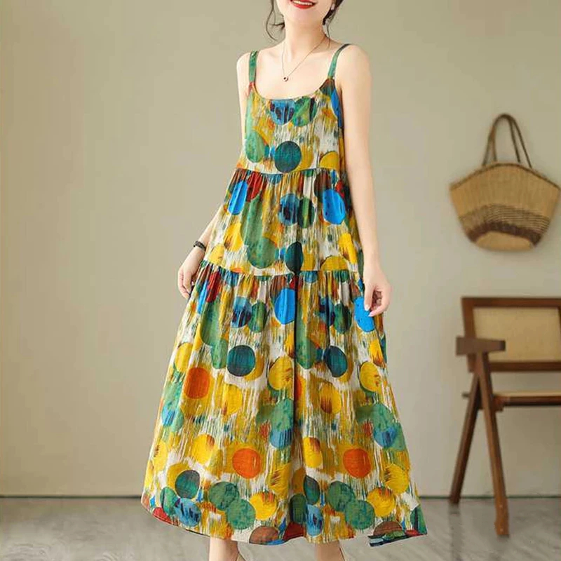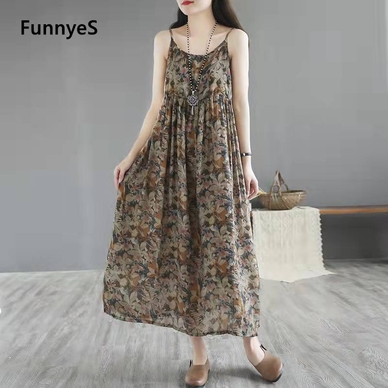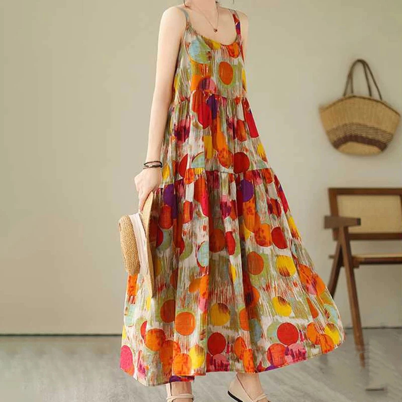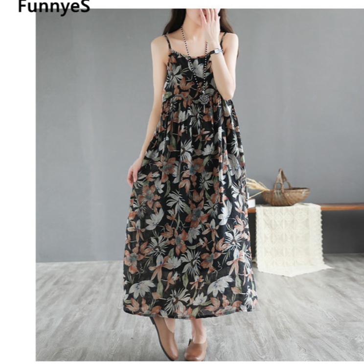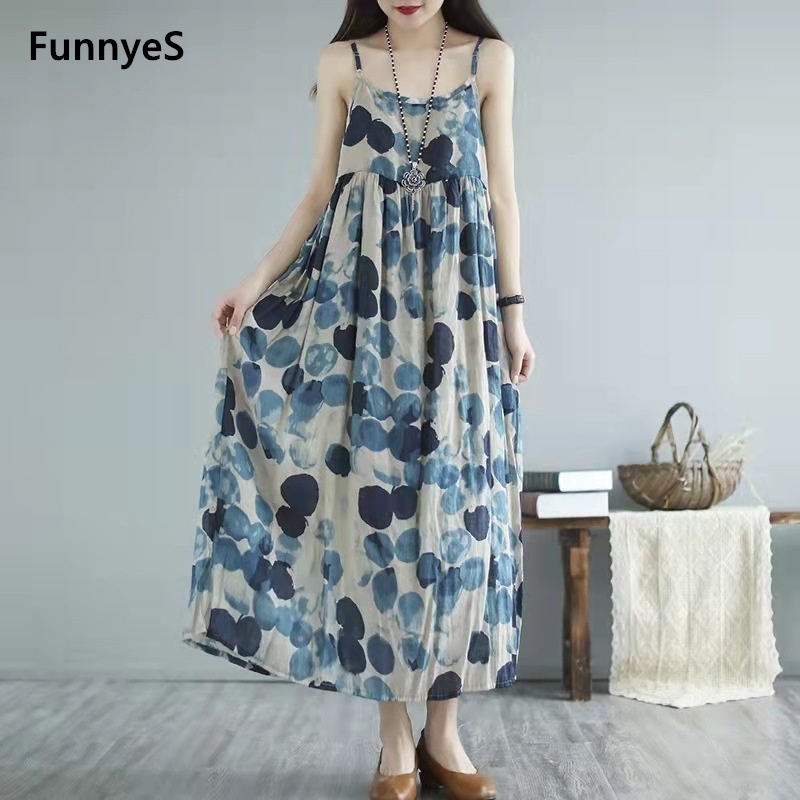 FunnyeS Sleeveless Dress For Women Plus Size Bohemia Outfit Cami Slip Maxi Dress 4010-2