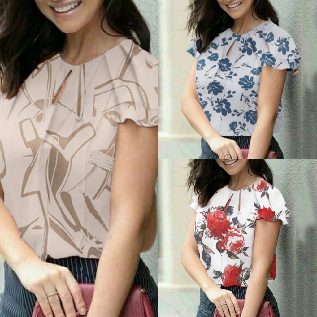 FunnyeS Blouse For Women Pleated Casual Shirt O Neck Ruffles Formal Work Blouse 2214-Beige