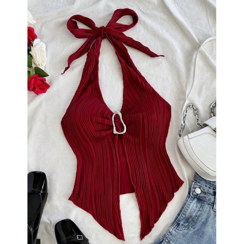 Sassy Top Tie Neck Metal Buckle Fitted Asymmetric Camisol