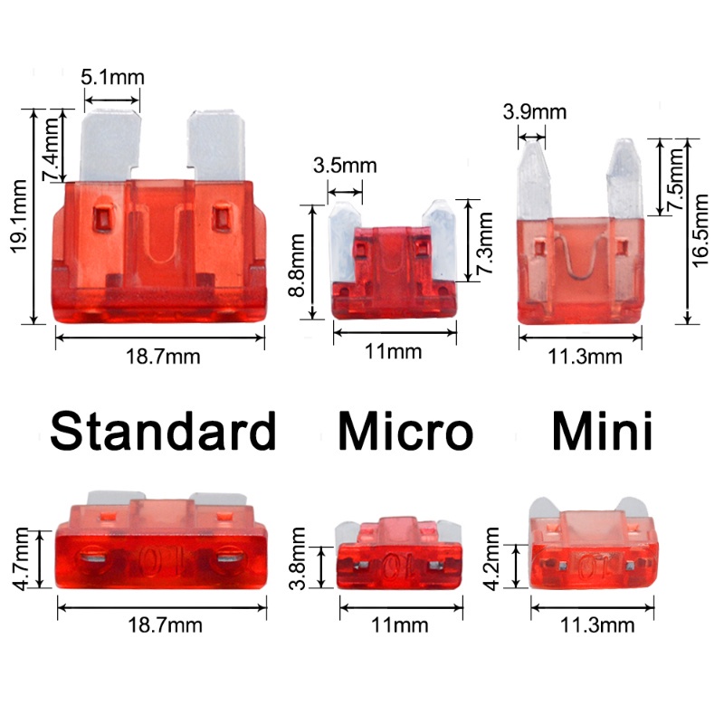 10PCS/lot Mini Micro Standard Auto Car Fuses 3A 5A 7.5A 10A 15A 20A 25A 30A 35A 40A