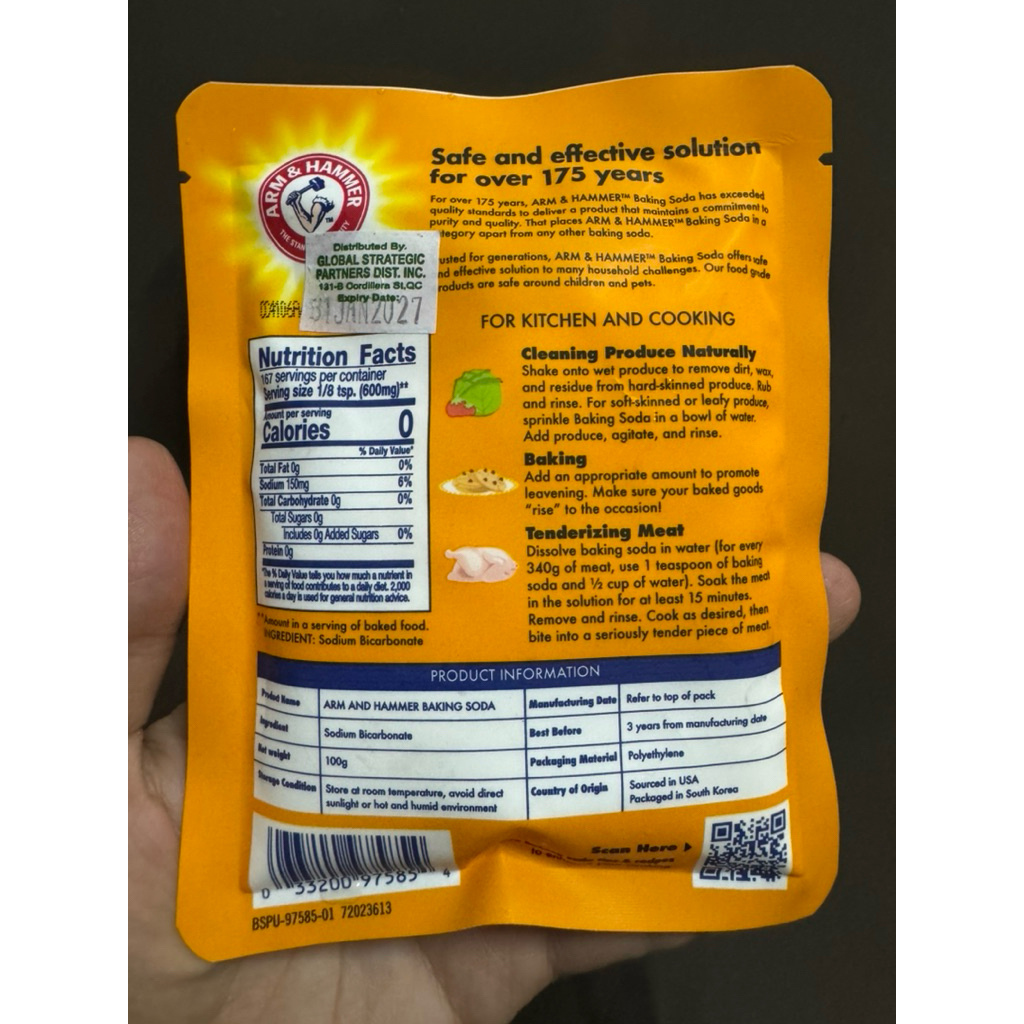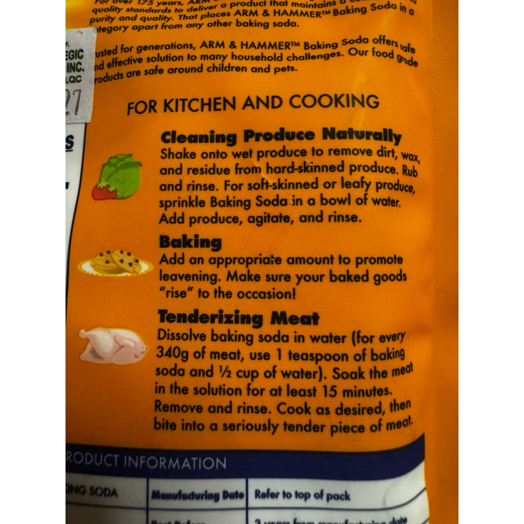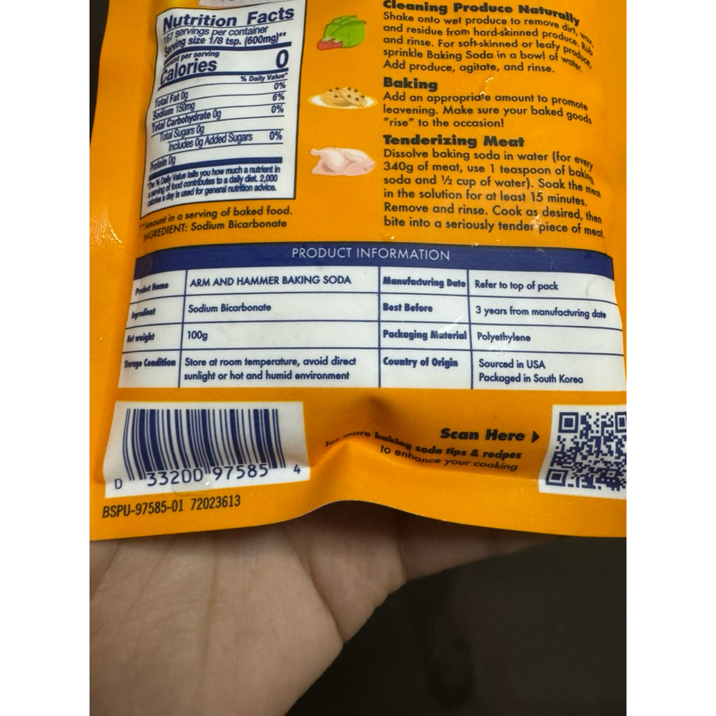100g SMALL POUCH Arm & Hammer Pure Baking Soda for cleaning baking tenderizing meat