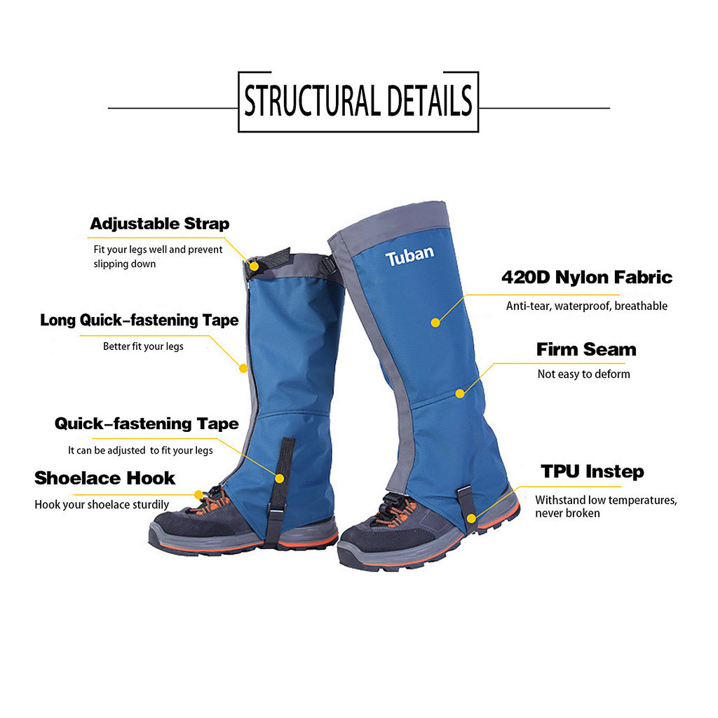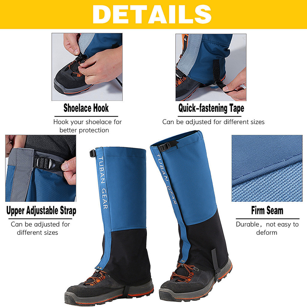 [LIXADA MALL] Leg Gaiters Waterproof Adjustable Anti-Tear Snow Boot Gaiters for Outdoor Snowshoeing Hiking Skiing