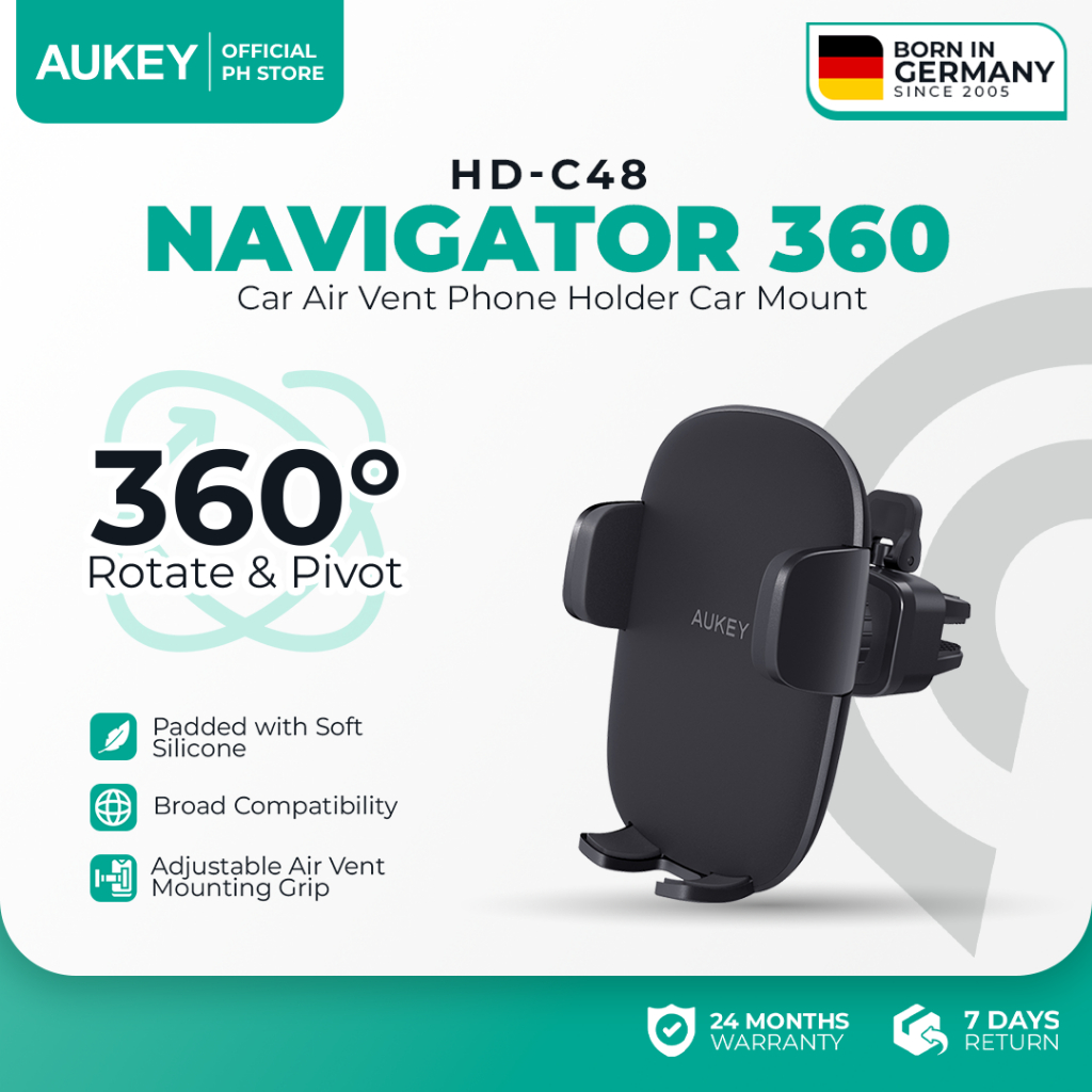 AUKEY HD-C48 Car Phone Holder Air Vent Mount 360° Rotation One Touch Lock Universal