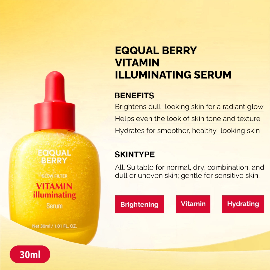EQQUALBERRY Natural Vitamin C Serum – Brightening Vitamin C featuring Acerola and Niacinamide 30ml