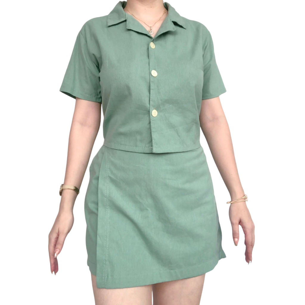 GC Collared Polo and Skort Terno for Women | Cotton Linen Top and Palda/Short with Pocket Coords Set