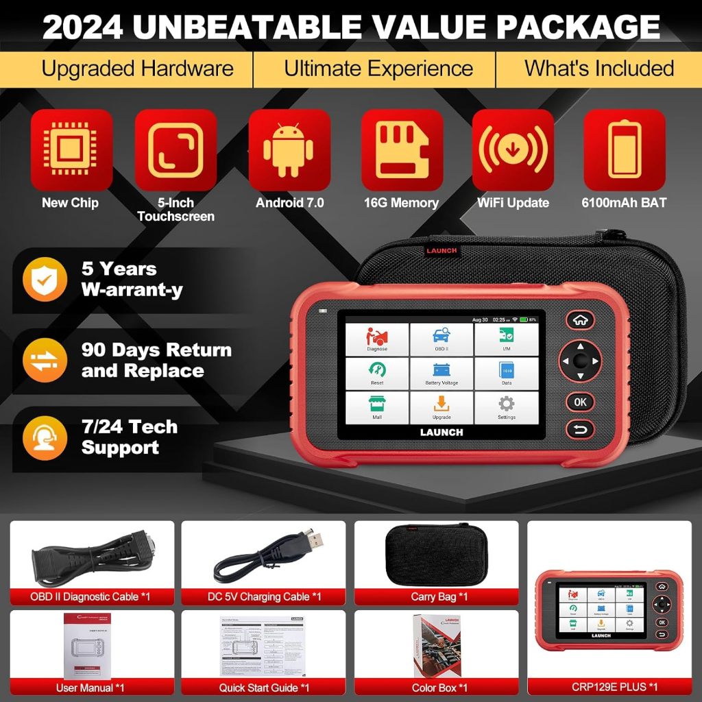 [Spot goods]LAUNCH X431 CRP129E PLUS Car Diagnostic Tools Full Systems SAS OIL Brake DPF 8 Services OBD2 Scanner 2 Years Free Update