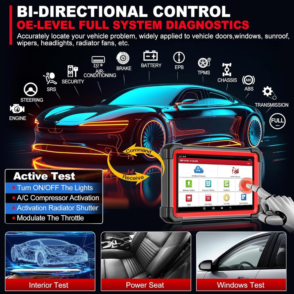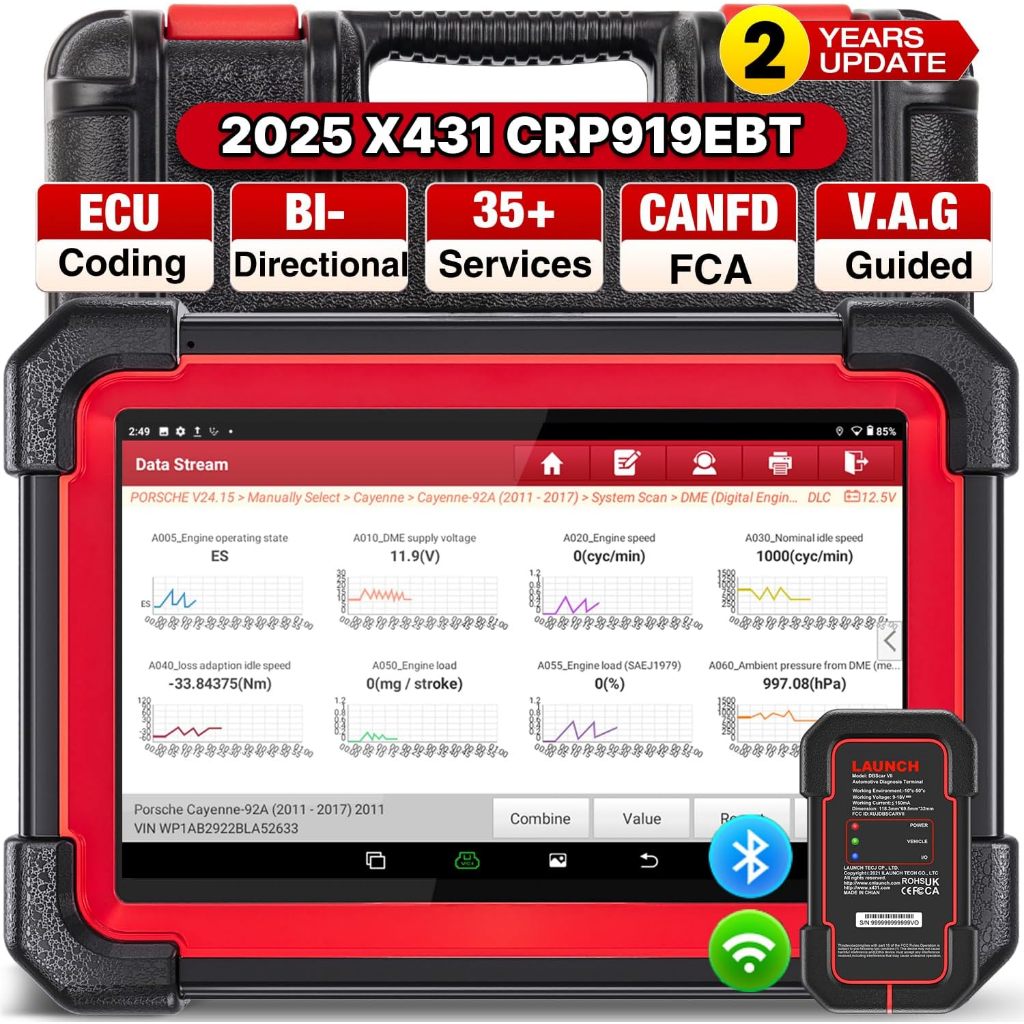 2025 NEWEST LAUNCH X431 CRP919EBT Elite OBD2 Scanner Wireless Bidirectional Scan Tool with ECU Coding 35+ Reset Functions