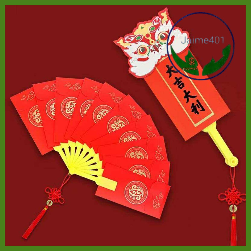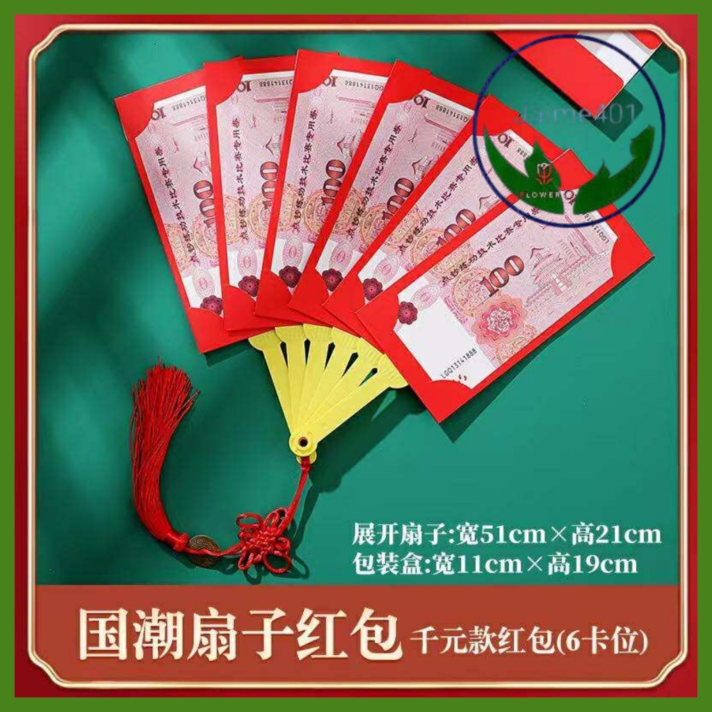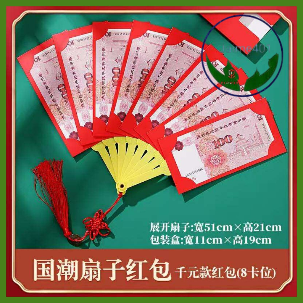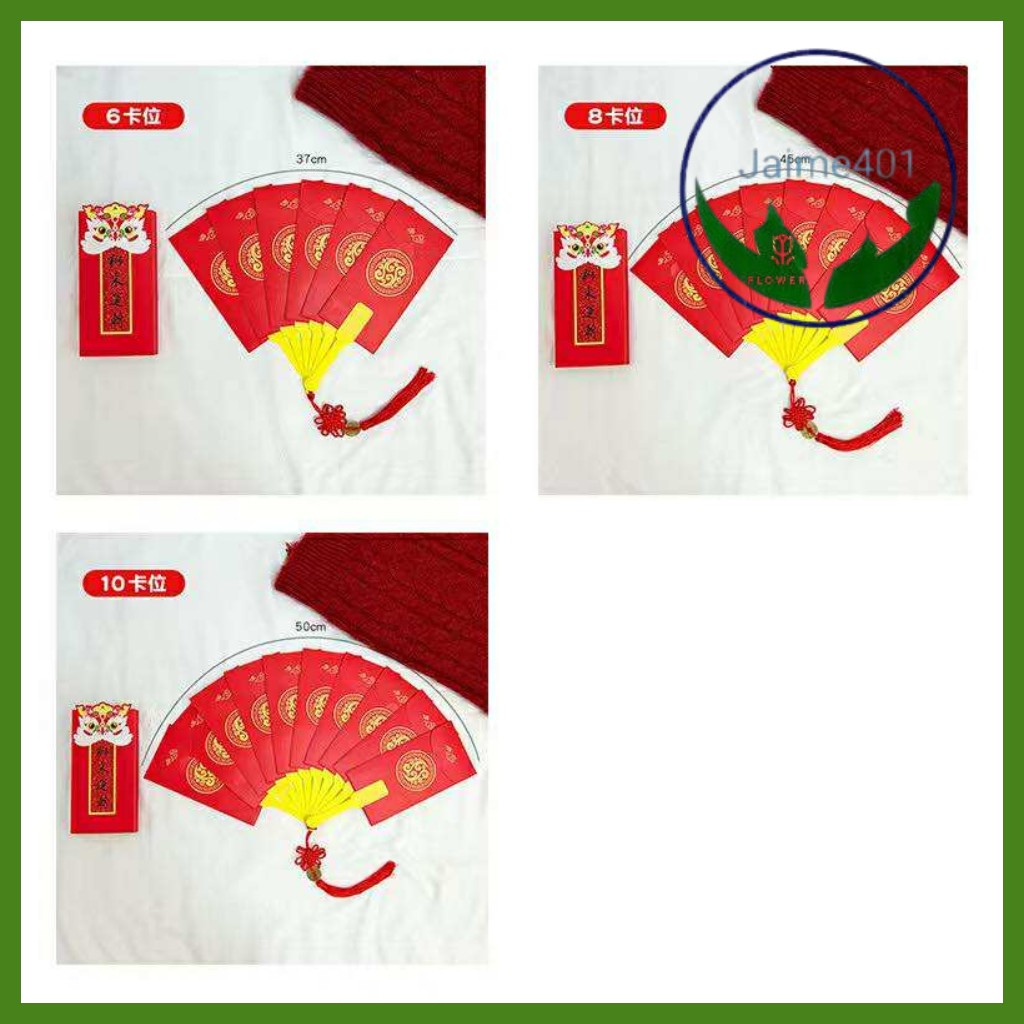JAIME401 1pcs Creative Fan-shaped Red Envelope 6/8/10 Card Slots Chinese New Year Packet Envelopes