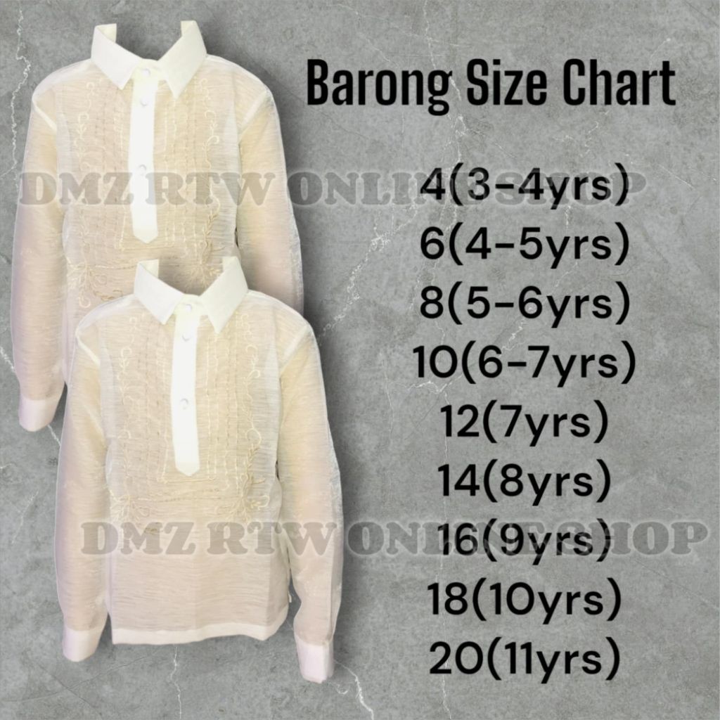CLASSIC FILIPINO BARONG FOR KIDS ( SNOW & ORGANZA )