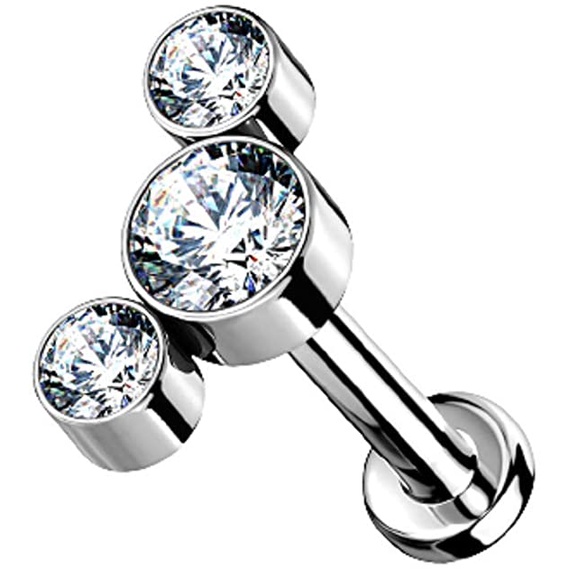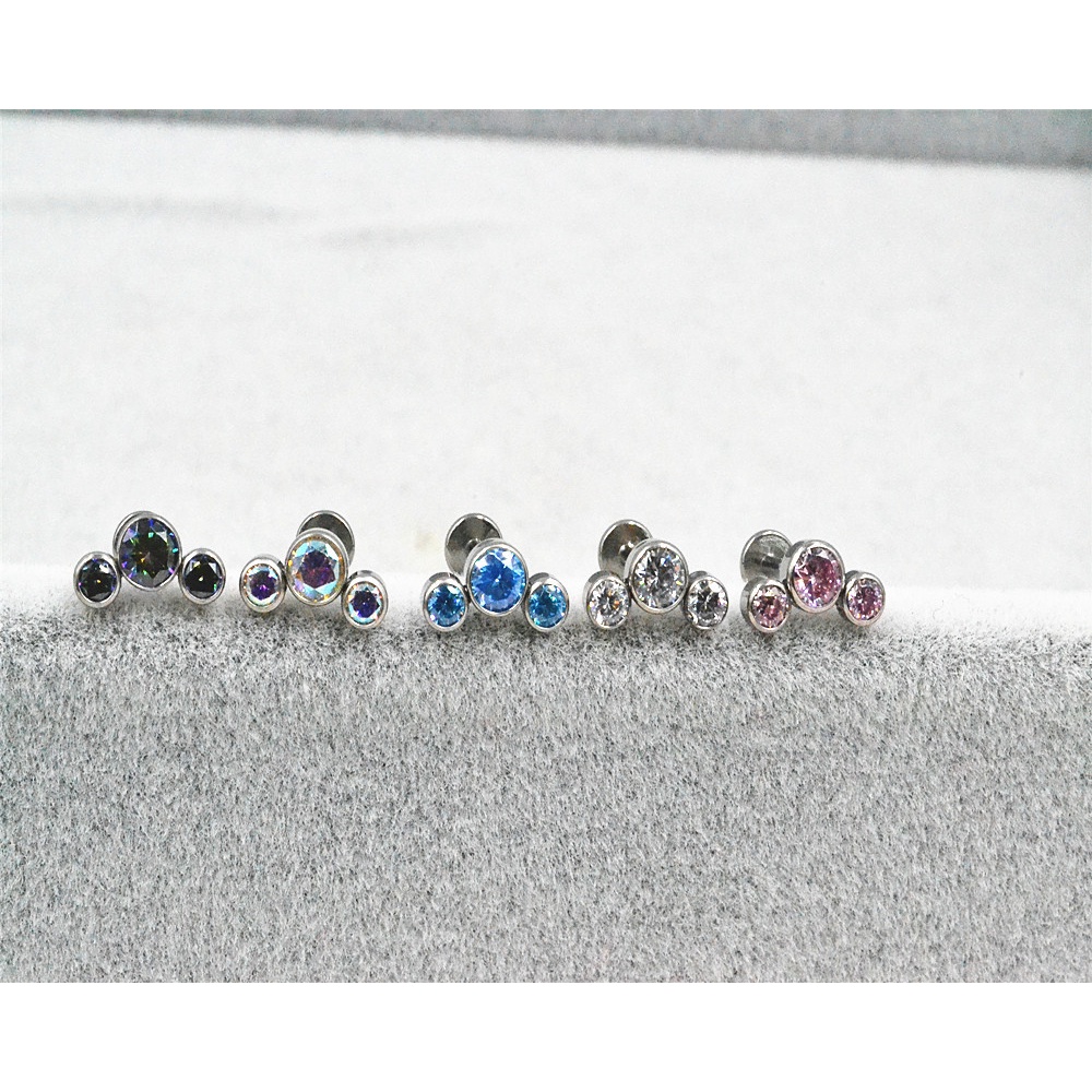 G23 Titanium Internal thread Lip ear Piercing Labret Stud CZ Zircon Stone Piercing Lip Ring Cartilage Earring Body Piercing Jewelry 16G