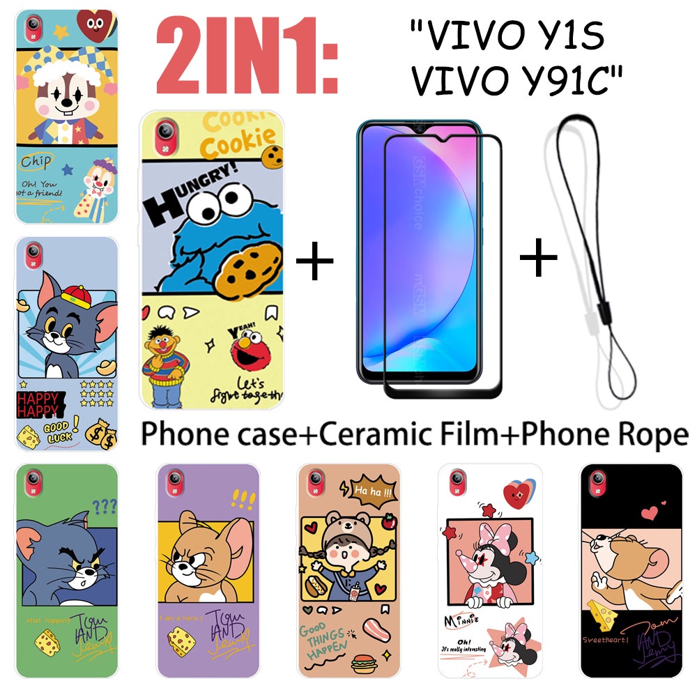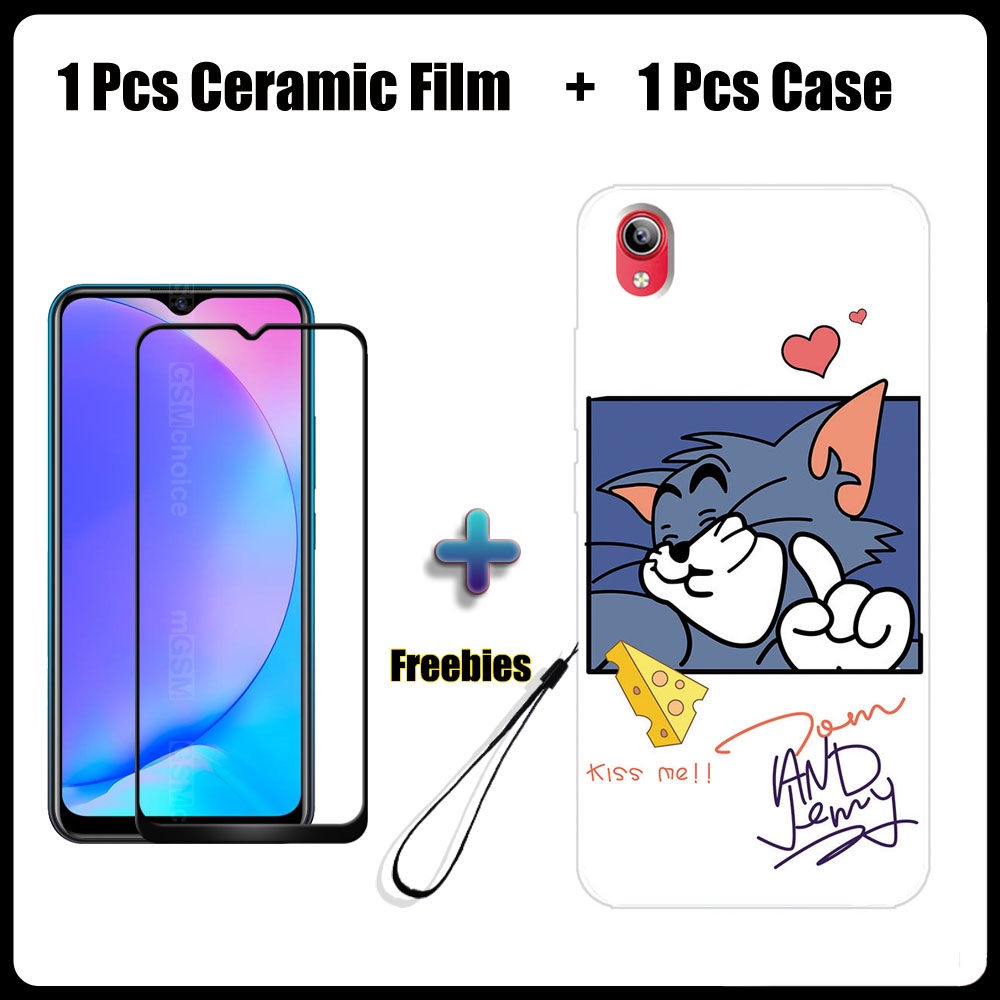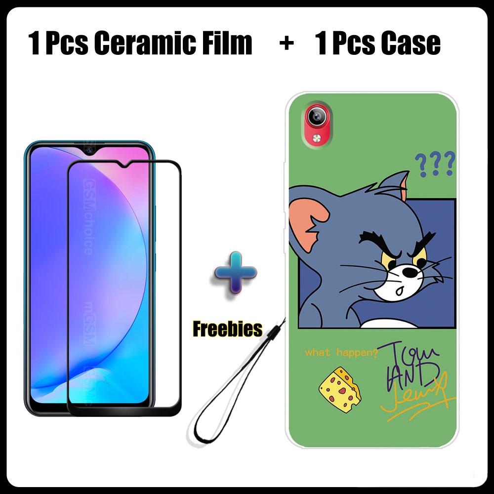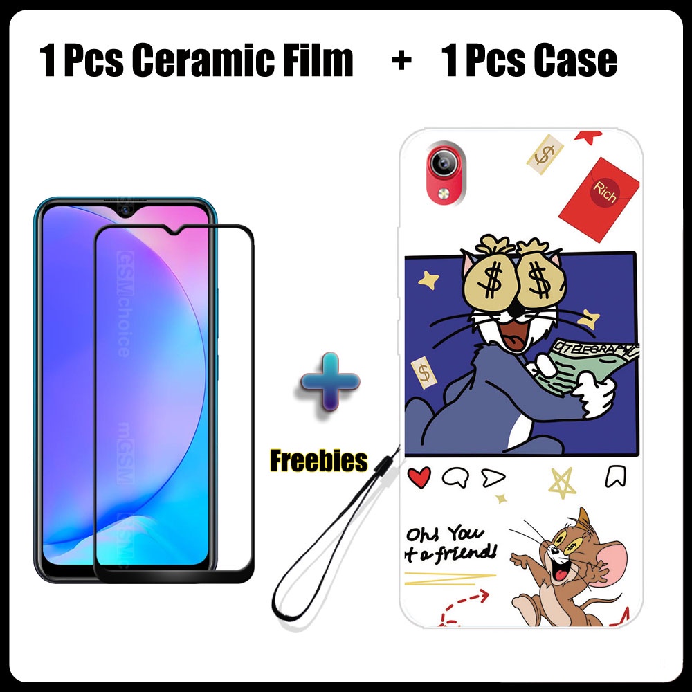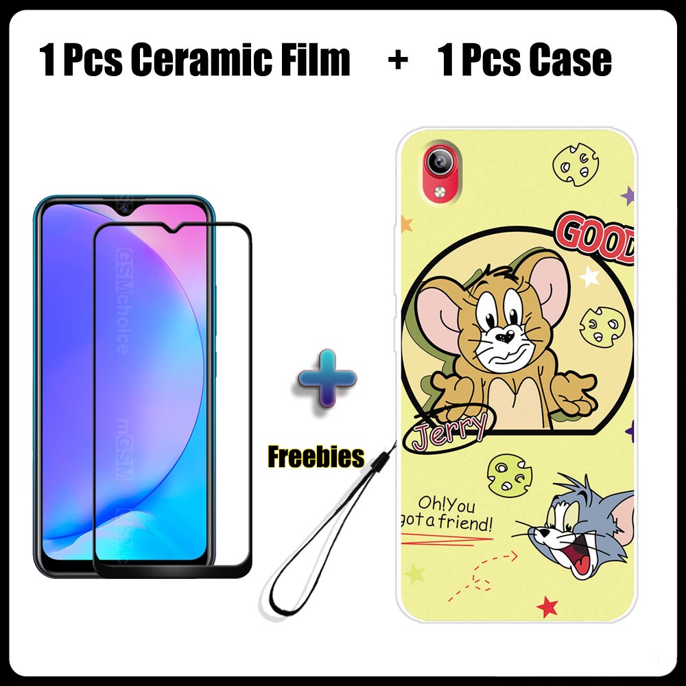 2 IN 1 VIVO Y1S VIVO Y91C Case with Tempered Glass Ceramic Film Screen Protector Cute Tom and Jerry Series