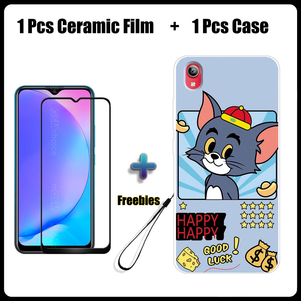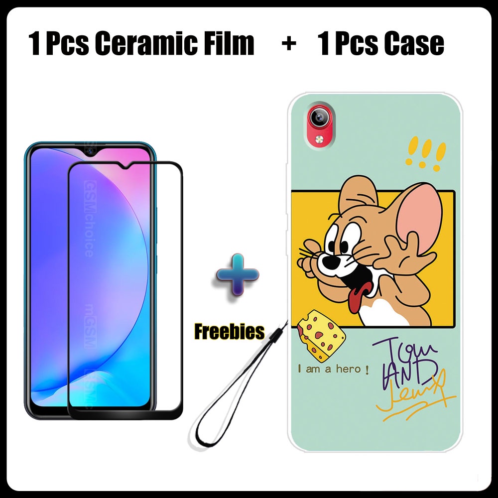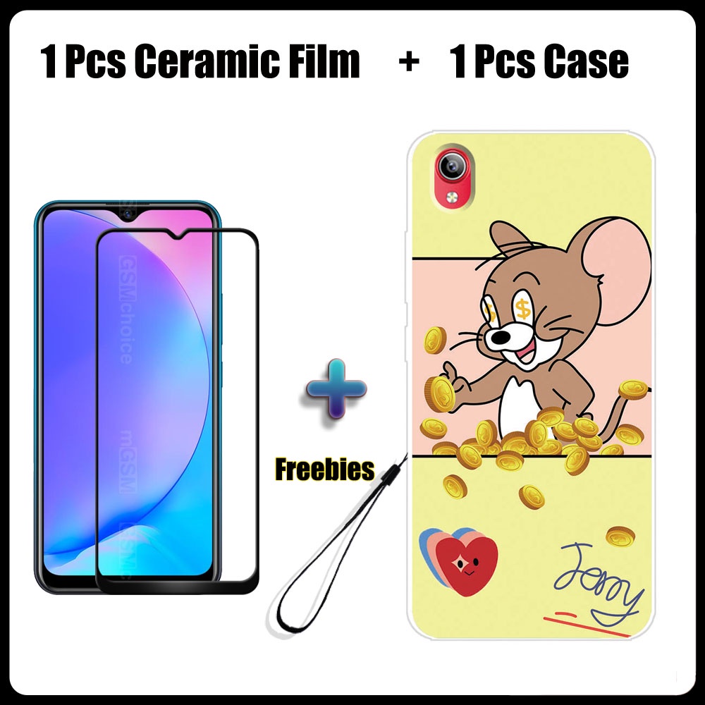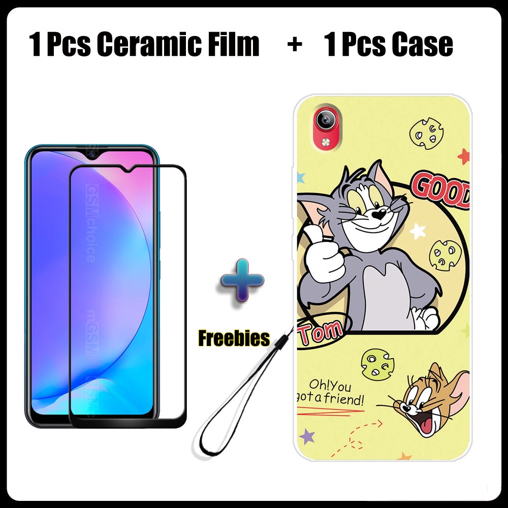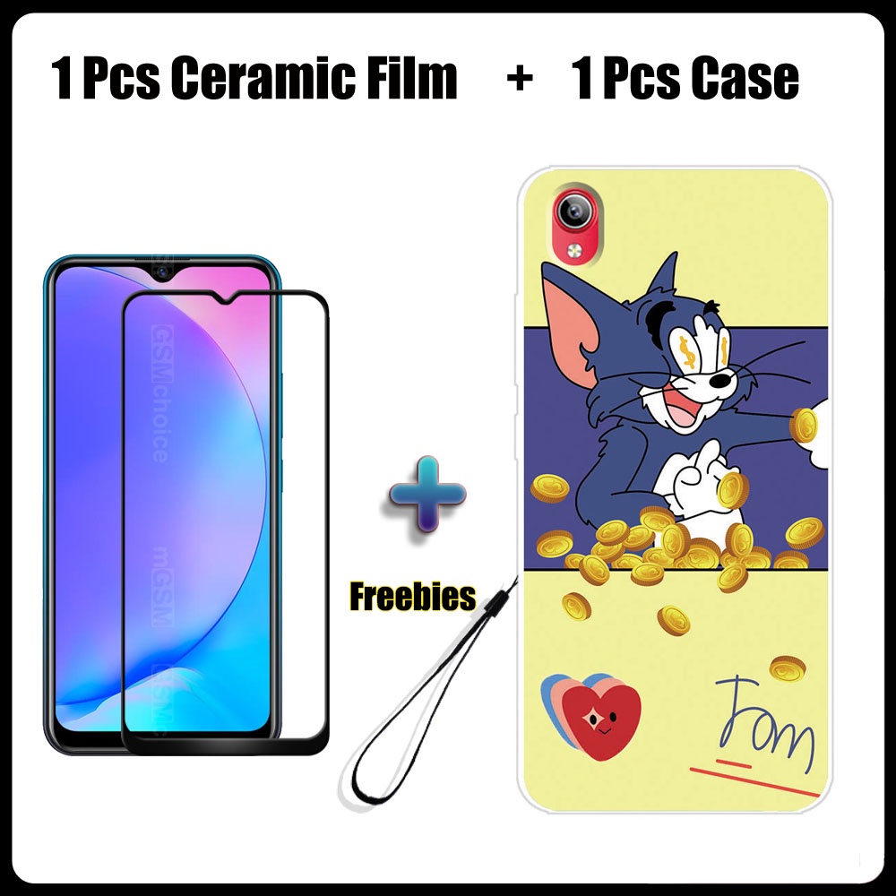 2 IN 1 VIVO Y1S VIVO Y91C Case with Tempered Glass Ceramic Film Screen Protector Cute Tom and Jerry Series