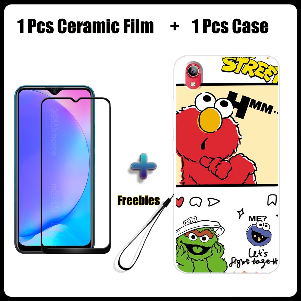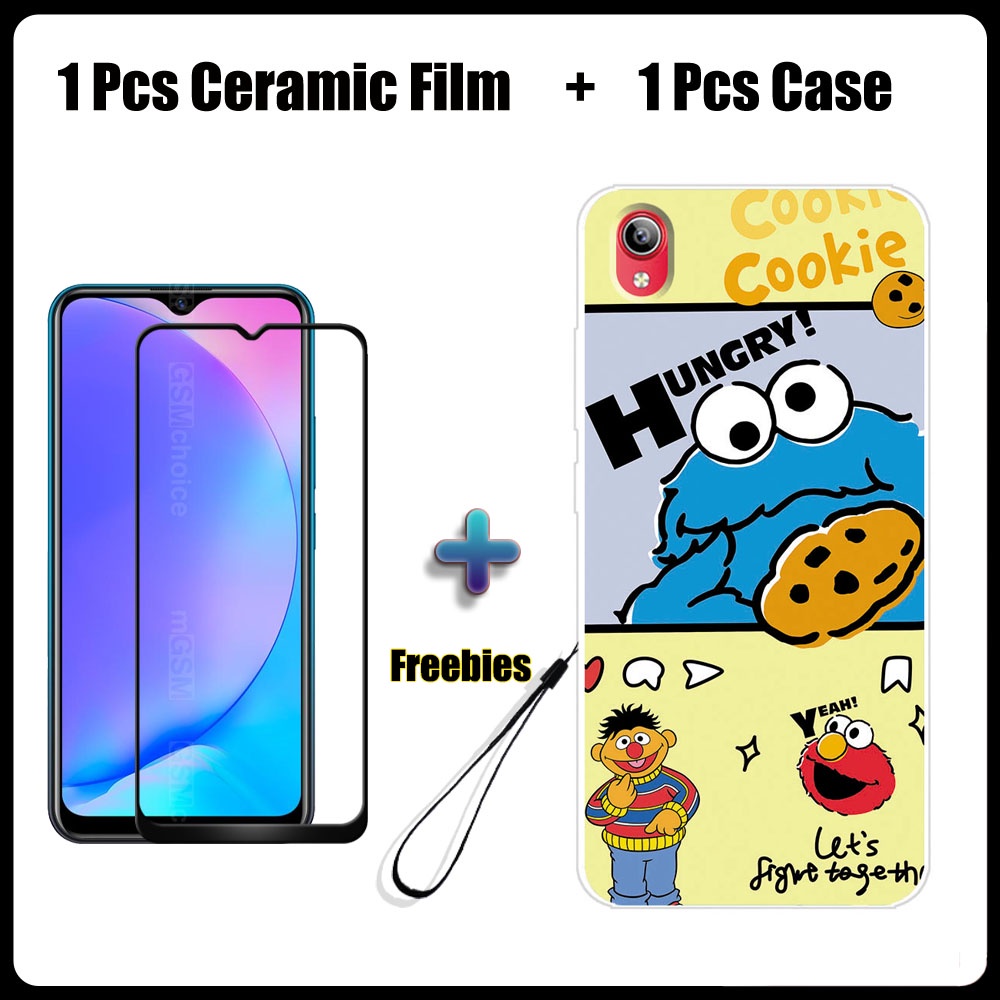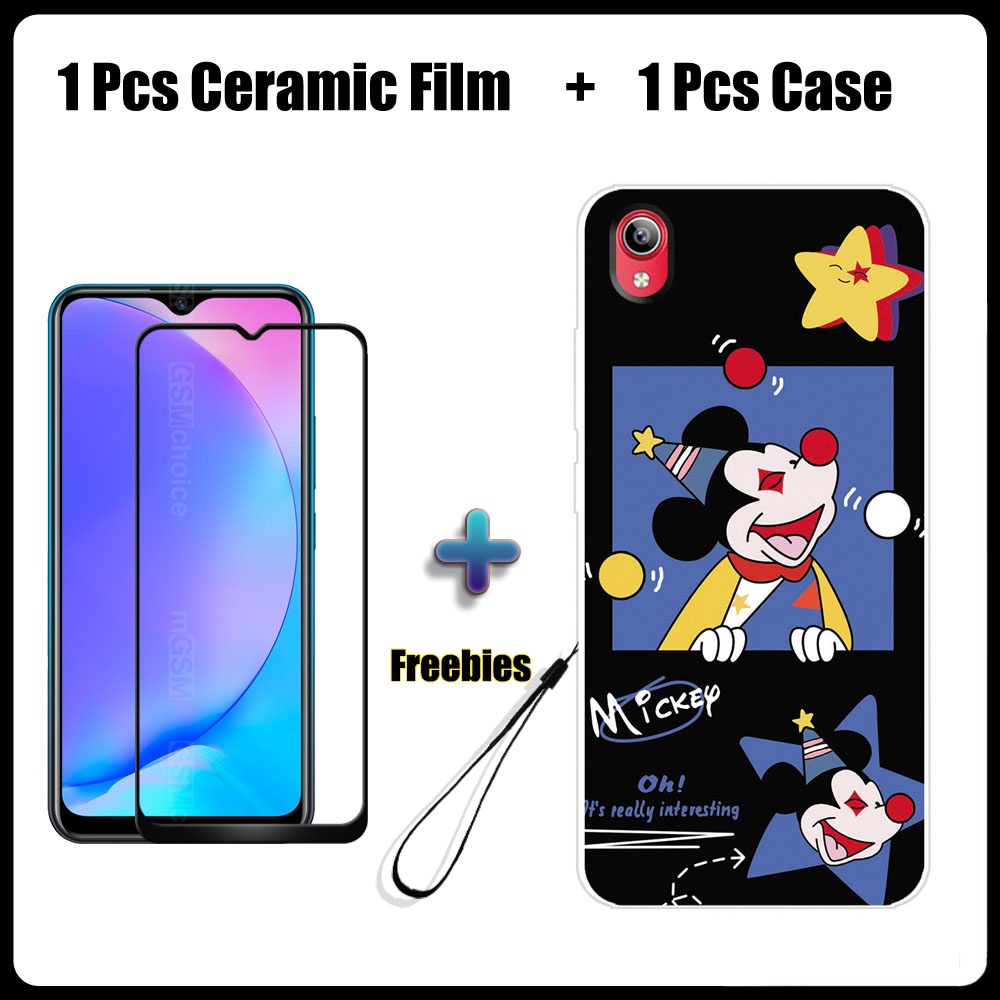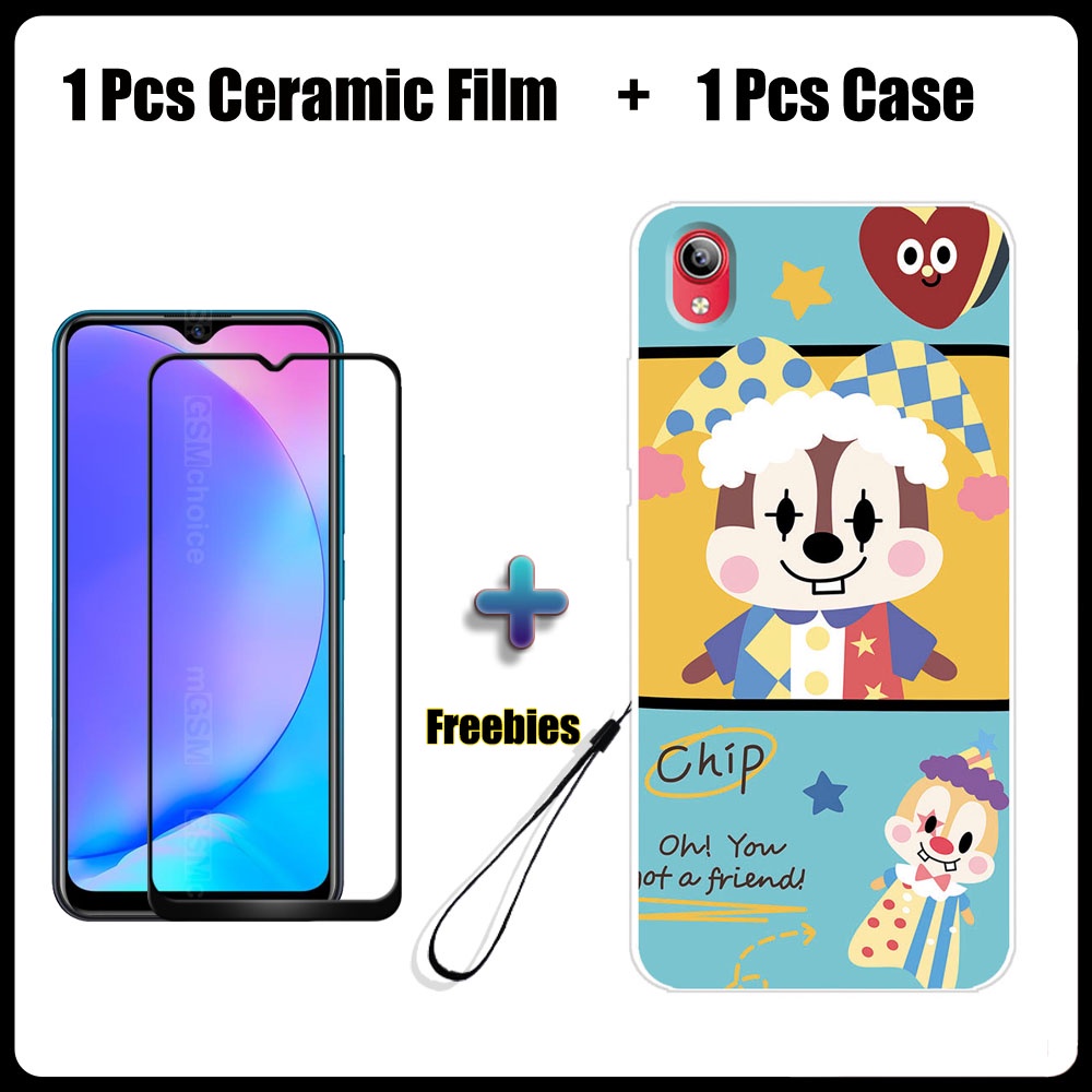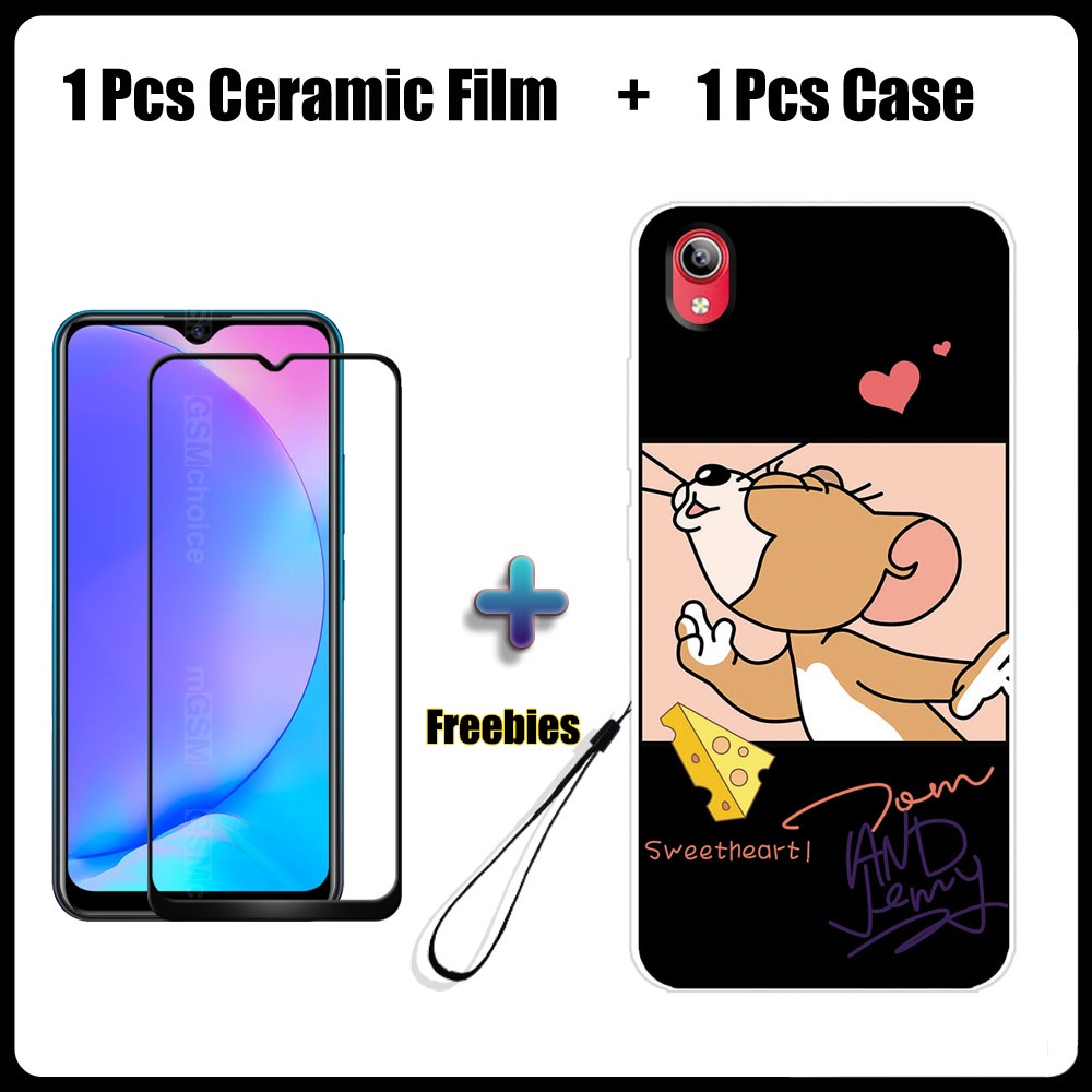 2 IN 1 VIVO Y1S VIVO Y91C Case with Tempered Glass Ceramic Film Screen Protector Cute Tom and Jerry Series