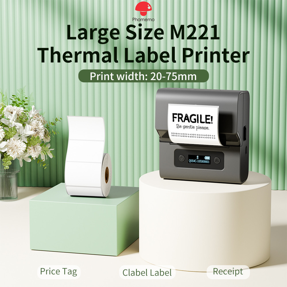 Phomemo M221 Upgrade Portable Label Maker Barcode Label Printer Bluetooth Thermal Inkless Label Maker Support Phone&PC and Thermal Label Rolls