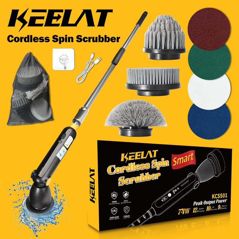 KEELAT KCSS01 7 IN 1 Electric Cleaning Brush Cordless Spin Scrubber IPX7 Waterproof Rechargeable