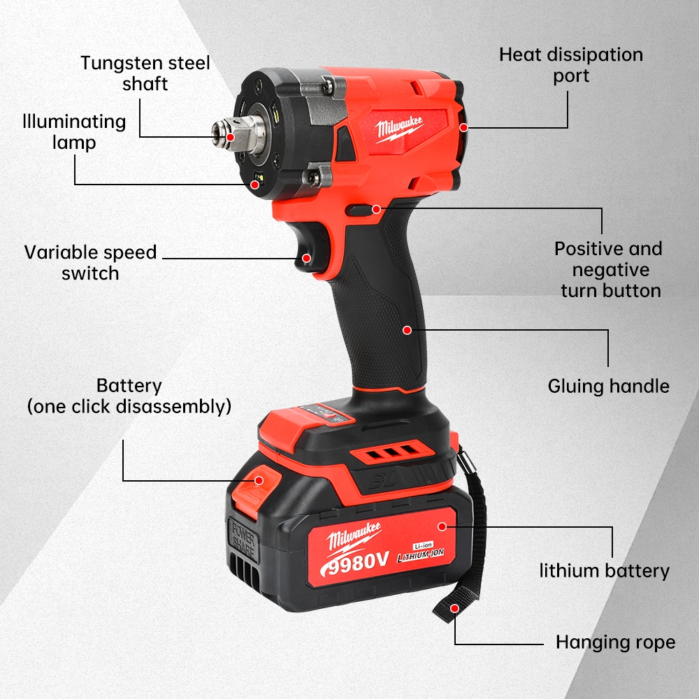 Milwaukee Impact Wrench 9980V Cordless Electric Impact Driver Battery Brushless Wrench