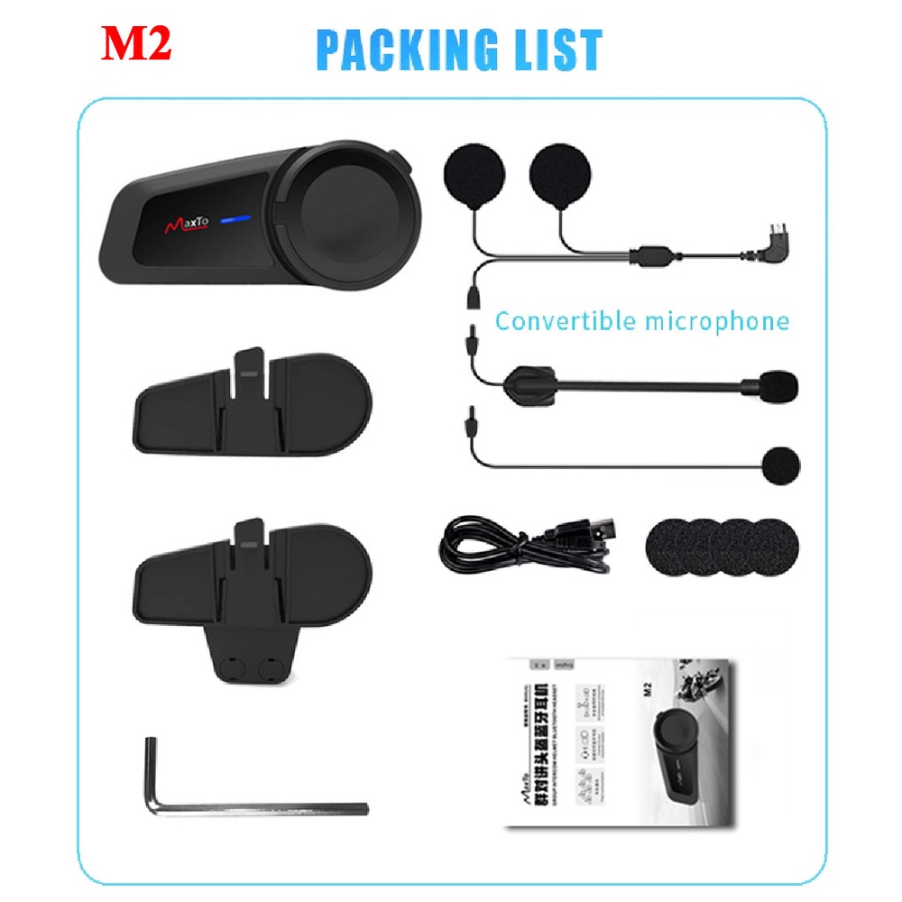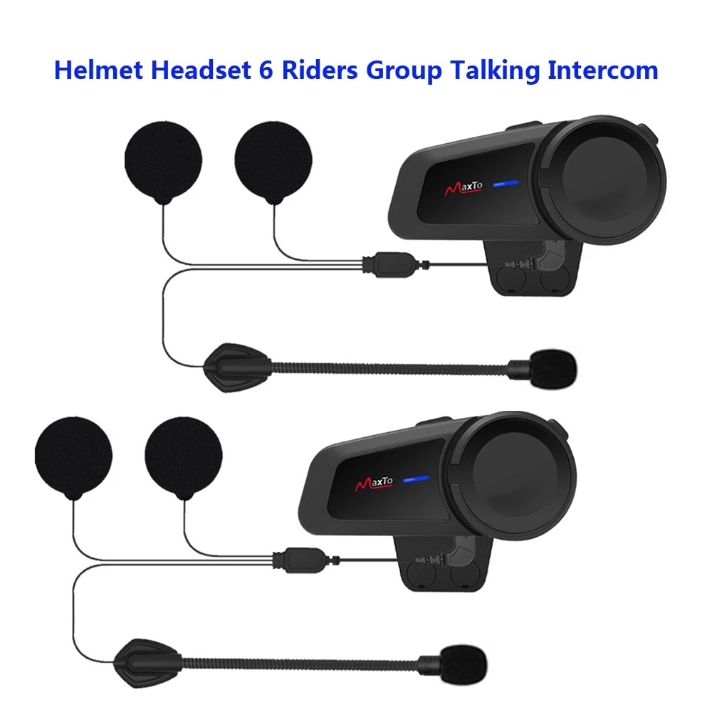 2 Pcs MAXTO M2 Motorcycle Helmet Headset 6 Riders Group Talk Intercom
