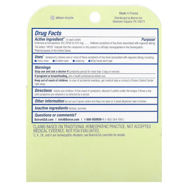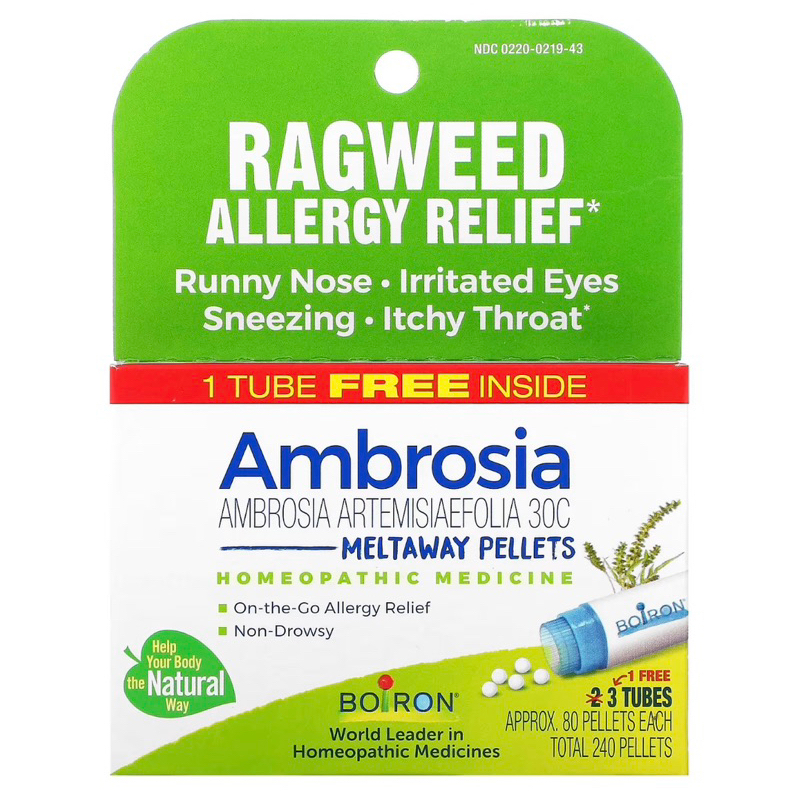 Boiron Ambrosia, Ragweed Allergy Relief, Meltaway Pellets, 3 Tubes, 80 Pellets Each