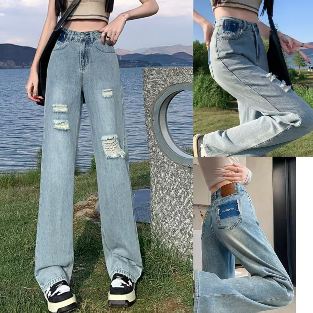 Baggy Jeans for Woman mom jeans high waist Pants wide leg pants high waist Tattered Jeans COD