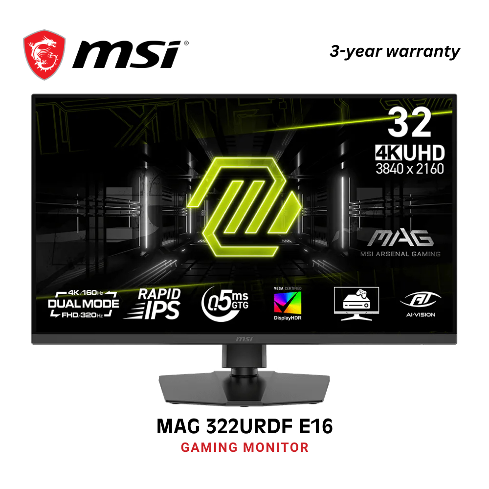 MSI MAG 322URDF E16 31.5" 3840x2160 UHD 160Hz / 1920x1080 FHD 320Hz Rapid IPS Gaming Monitor itw