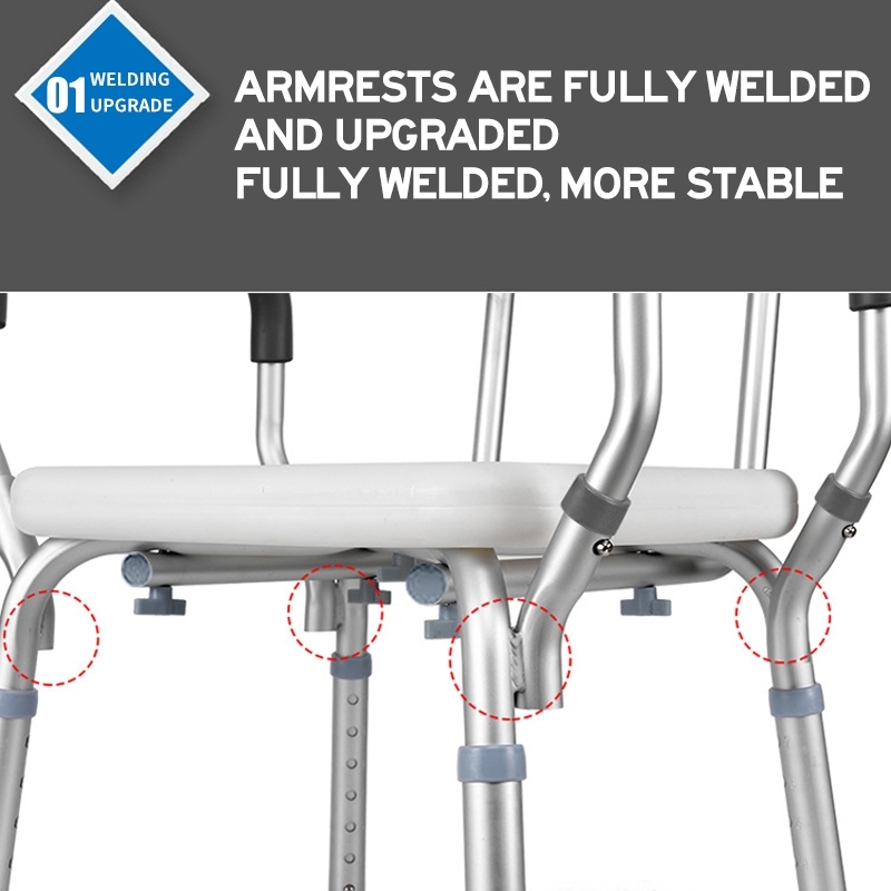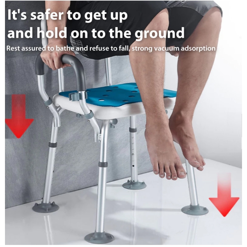 Shower Chair with Backrest Armrests for Elderly Aluminum Alloy Pregnant Woman Bath Chair