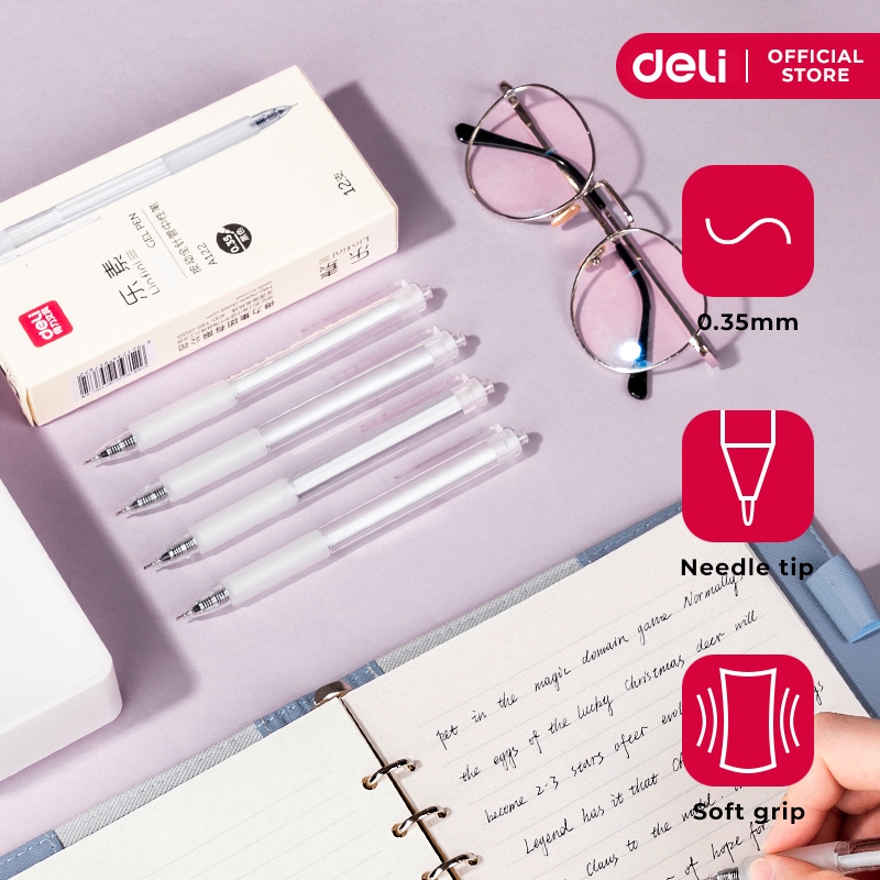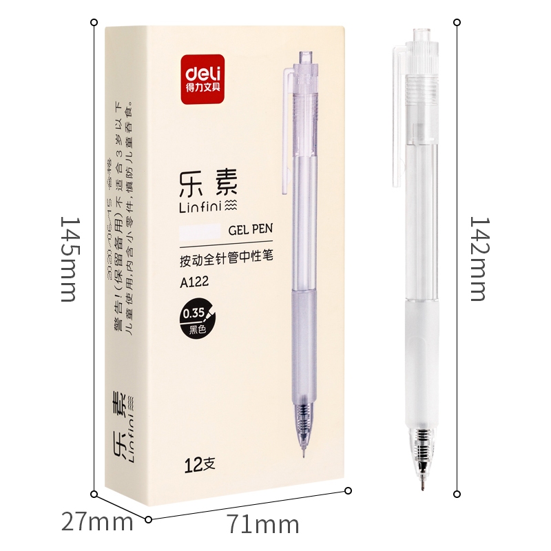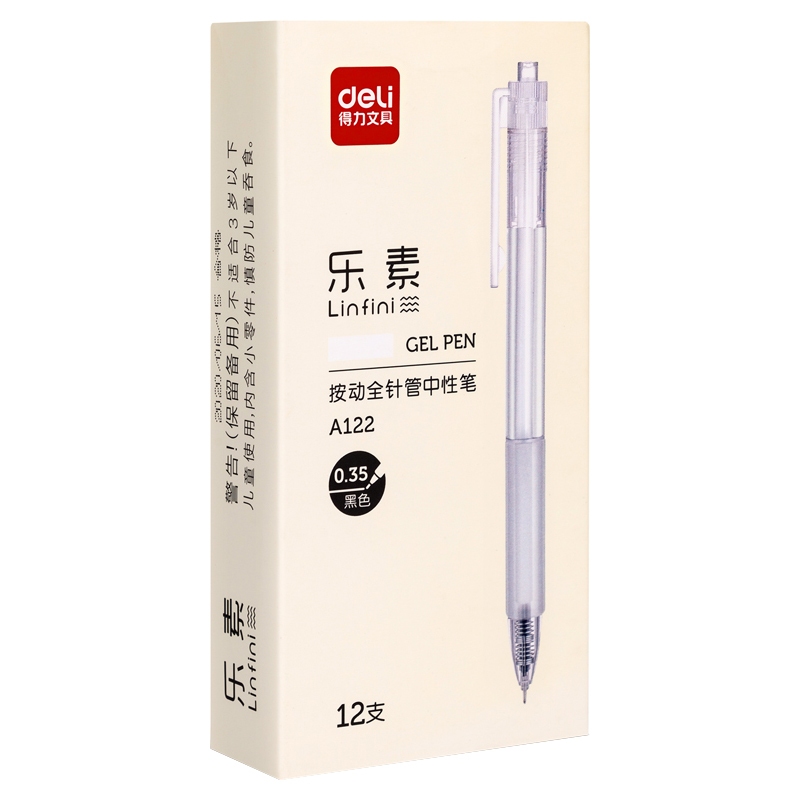 Deli A122 Needle Tip Smooth Writing Gel Pen 0.35mm Black 12pcs/box