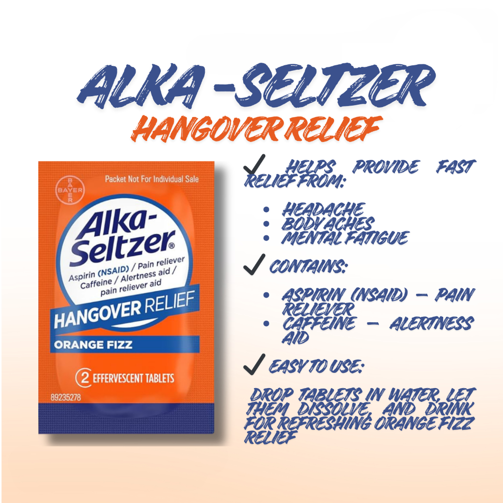 ALKA-SELTZER HANGOVER RELIEF (ORANGE FIZZ) 2 EFFERVESCENT [EXPIRY: APRIL 2026[