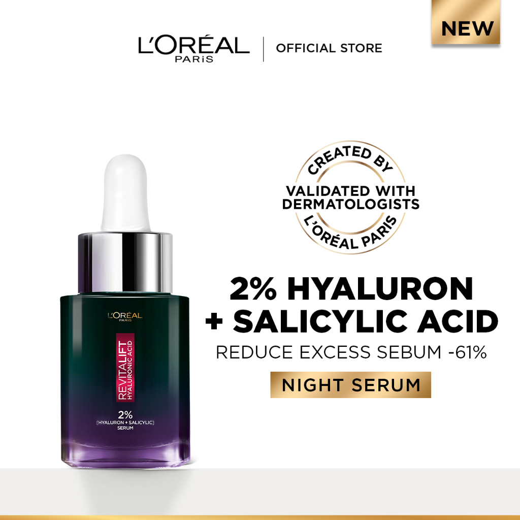 NEW LOreal Paris Revitalift Hyaluronic Acid Night Serum, Salicylic Acid 15/30ML