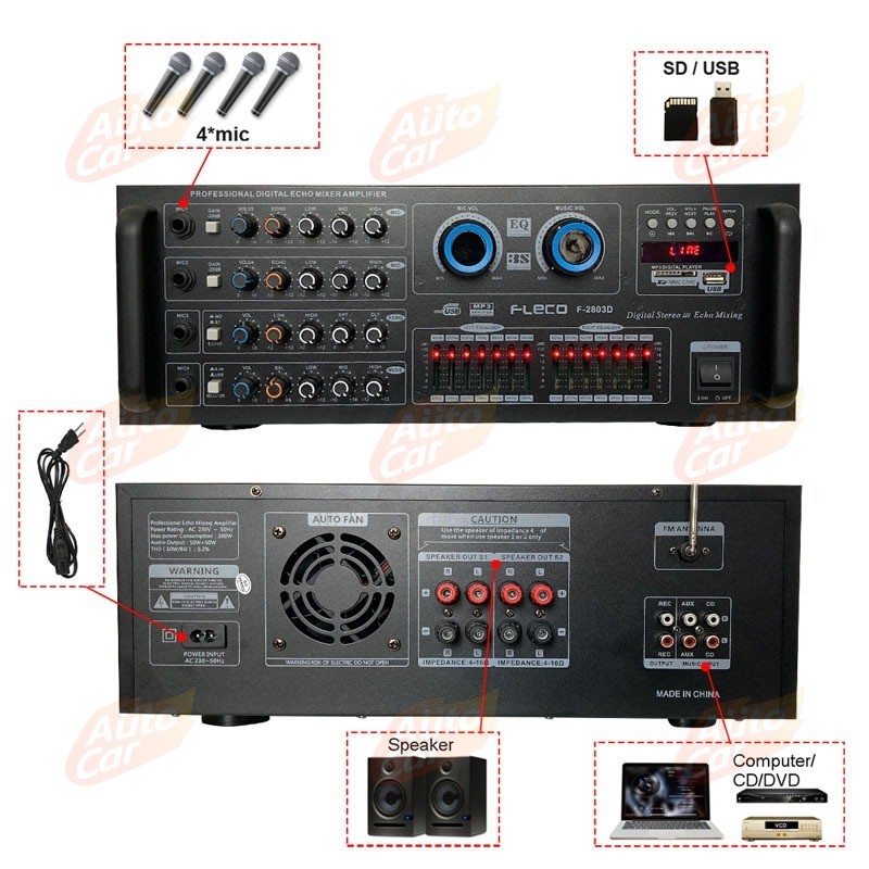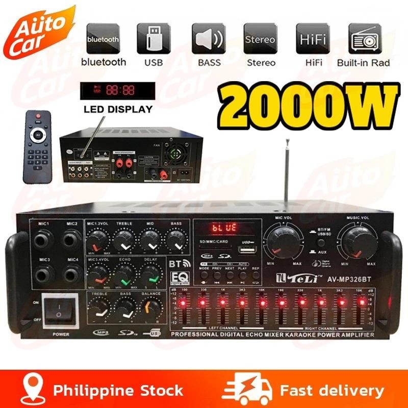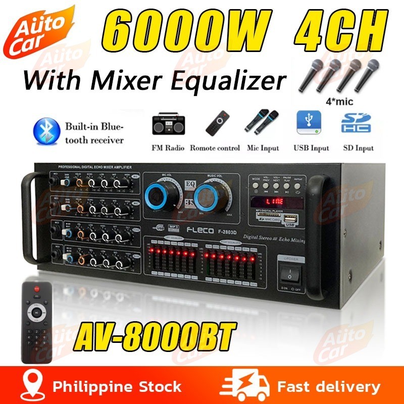 6000W AV-8000BT Bluetooth Stereo Amplifier 12V/220V 4CH With Mixer Equalizer HIFI Audio Amplifier FM Radio Car/Home Karaoke Player