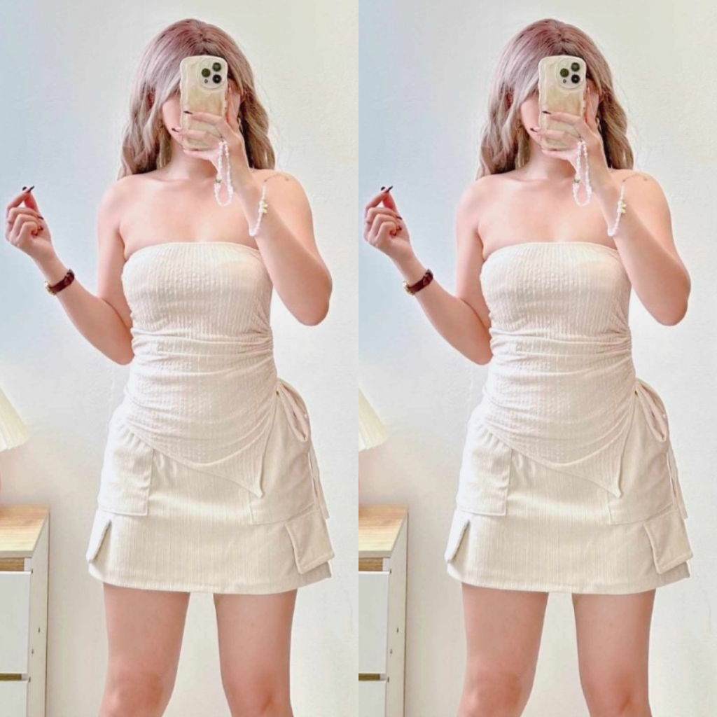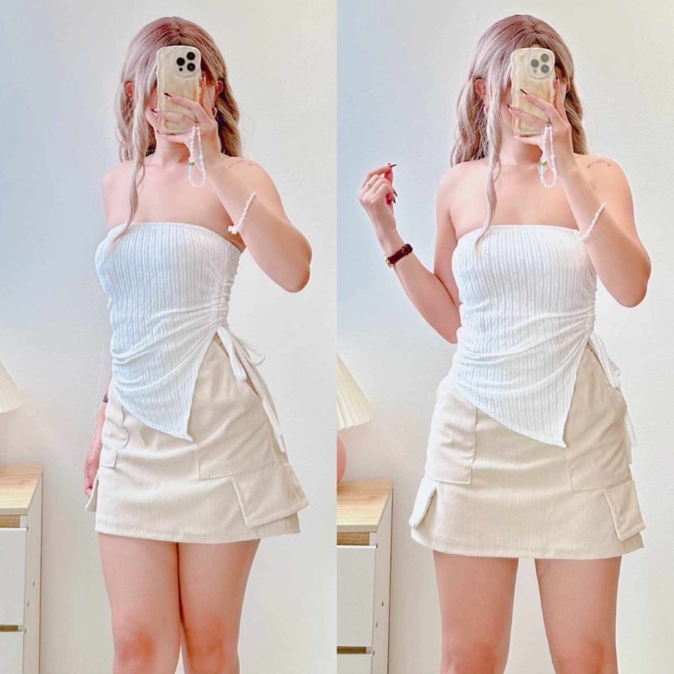 Hazelwise Tracy Side String Tube Top in Bark Crepe Top fits XS to SMALL