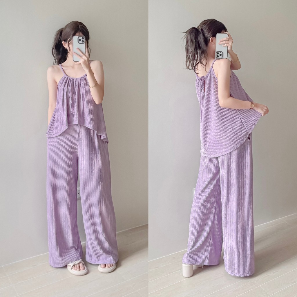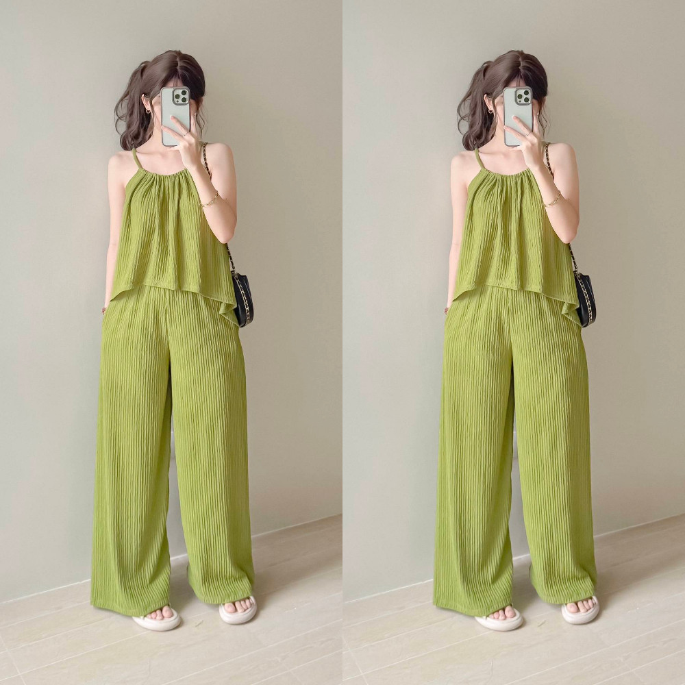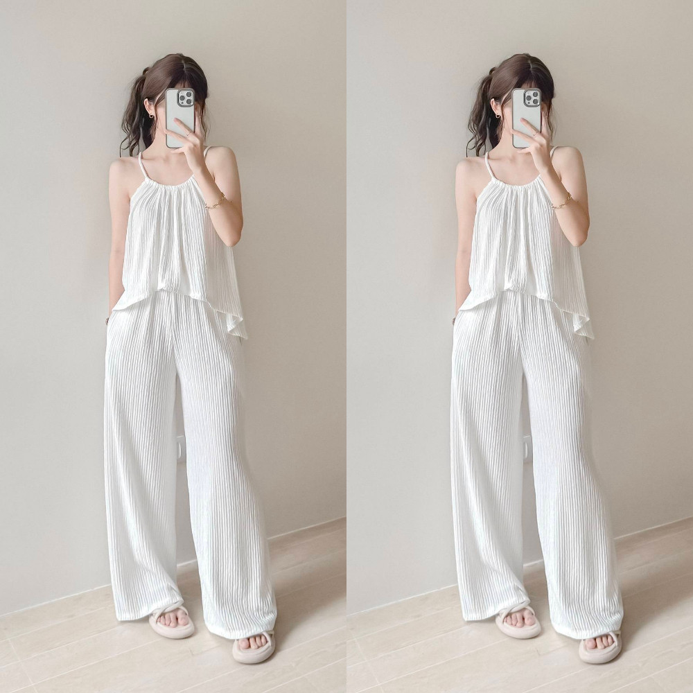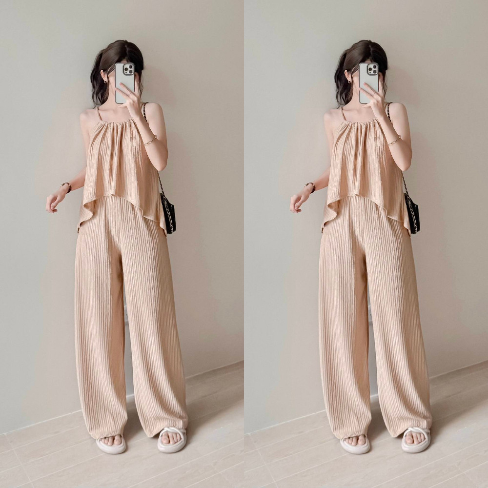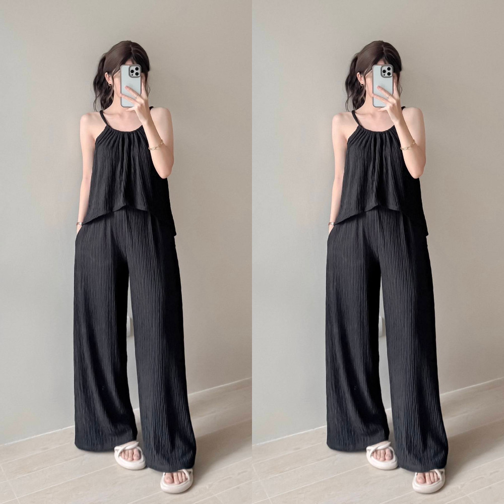 Hazelwise Adiza Loose Halter Top and Pants with Pockets in Bark Crepe Fabric Fits XS to MEDIUM